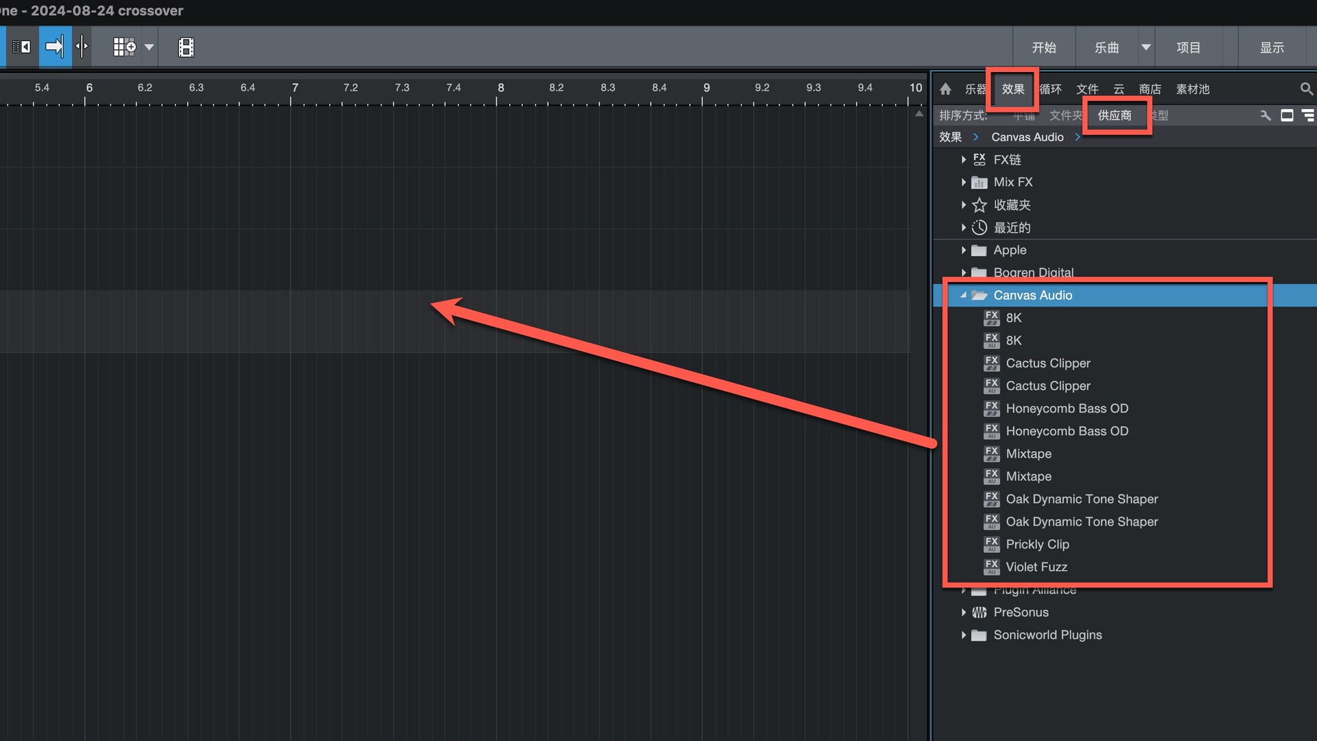 打开Studio One在效果-供应商下即可找到插件,拖动到左侧即可