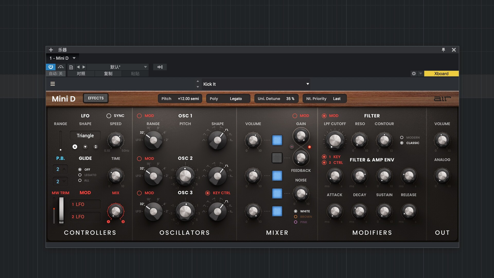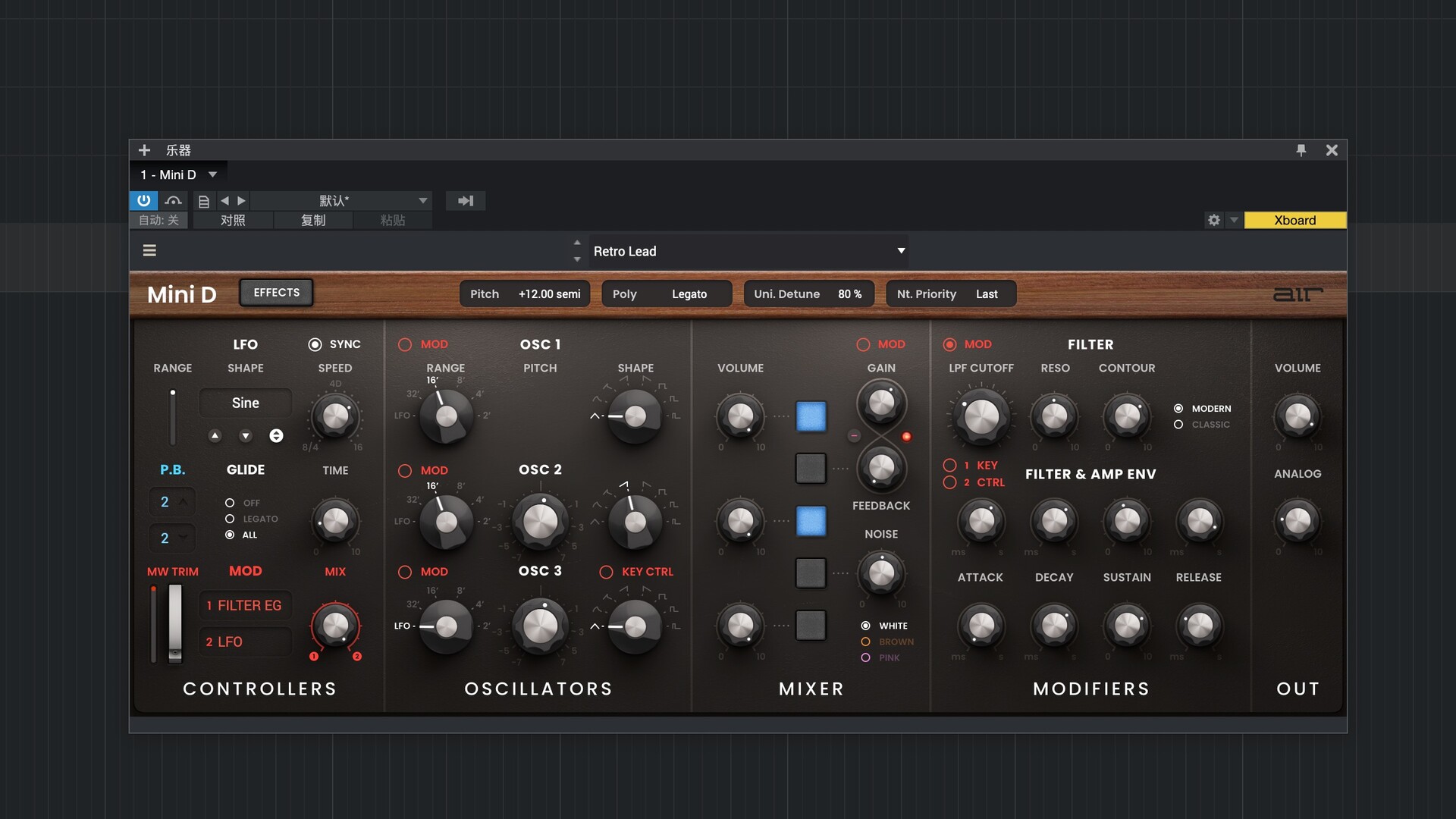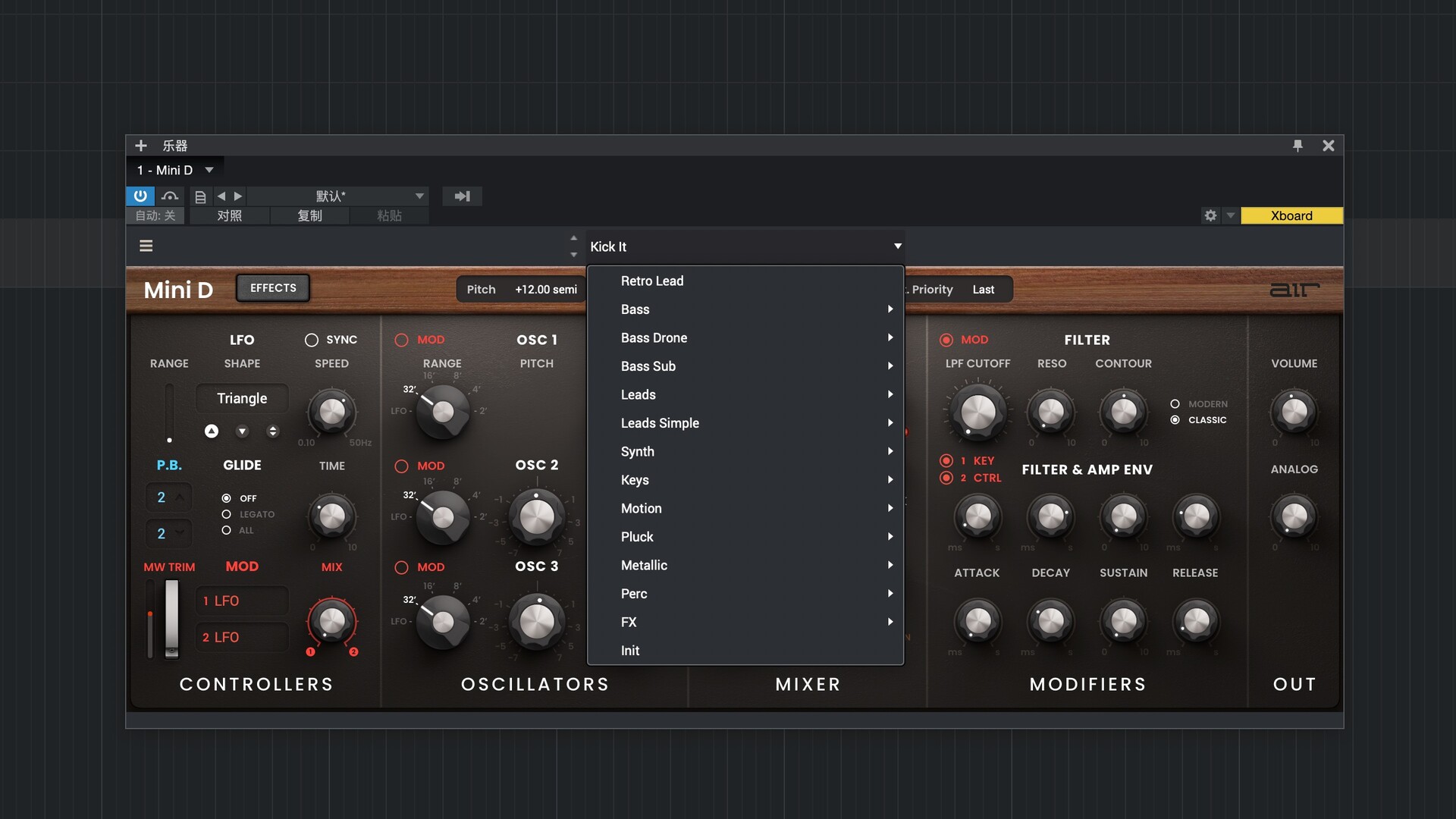 Mini D 的预设音色由世界知名的德国 AIr Music 团队打造,定能激发您的创作灵感!它涵盖十余个类别,从贝斯、主音到合成器音效,应有尽有,您一定能找到可以直接用于下一首曲目的音色,或是进行实验和定制专属音色的绝佳起点。