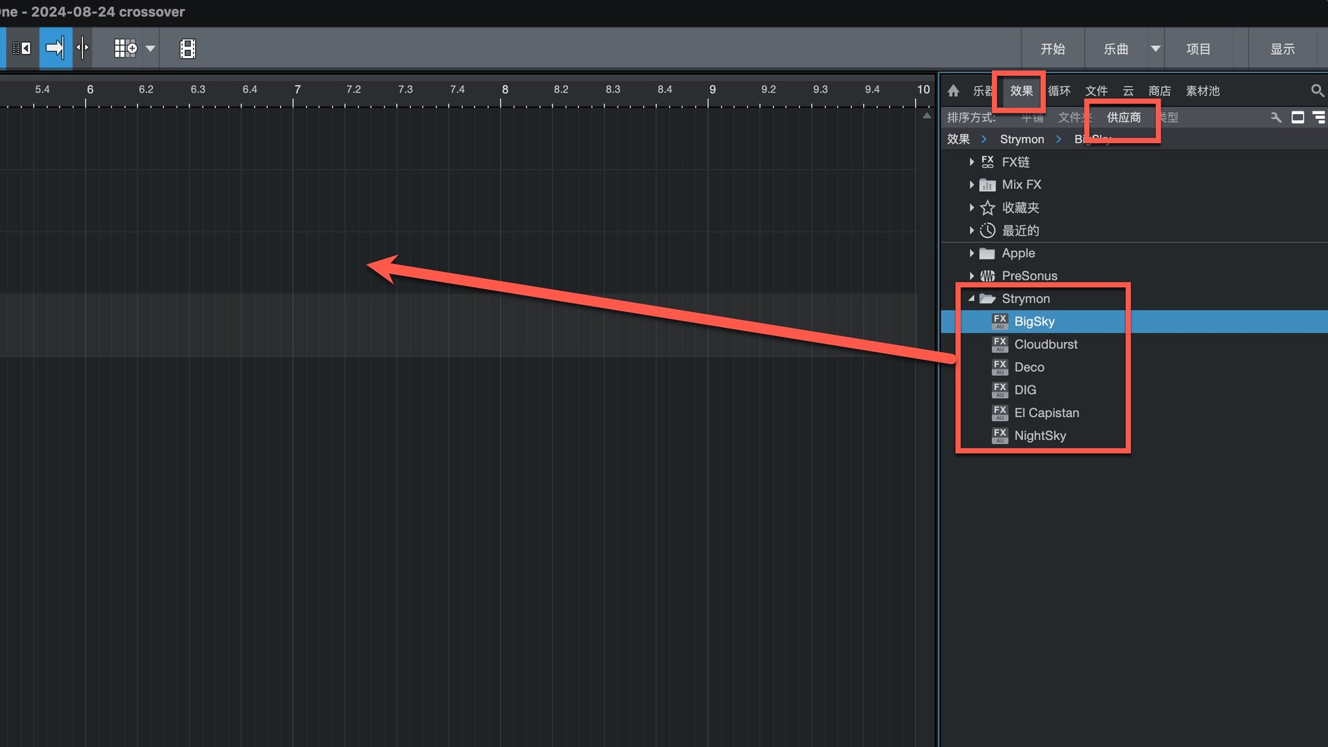 打开Studio One在效果-供应商下即可找到插件,拖动到左侧即可