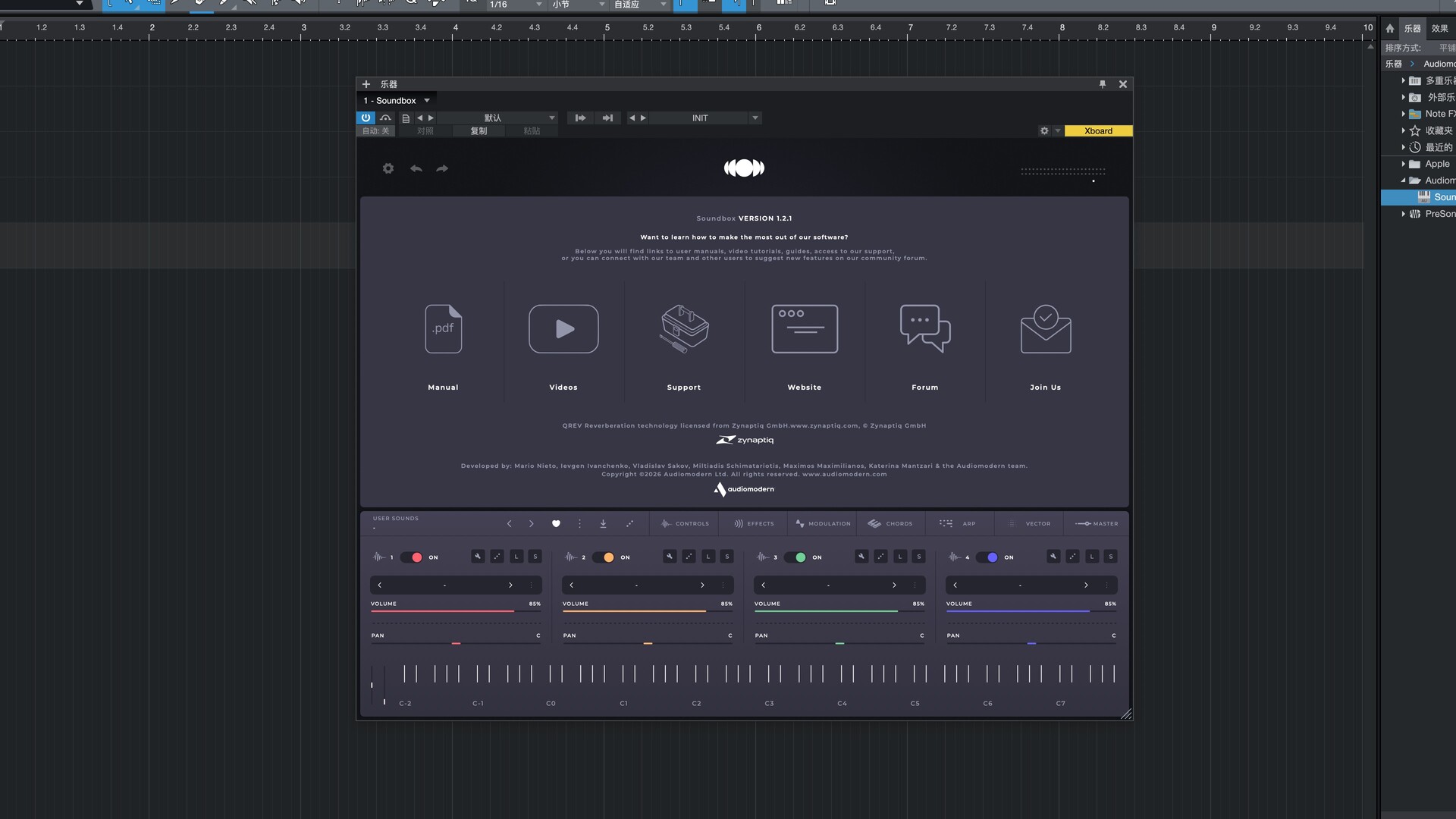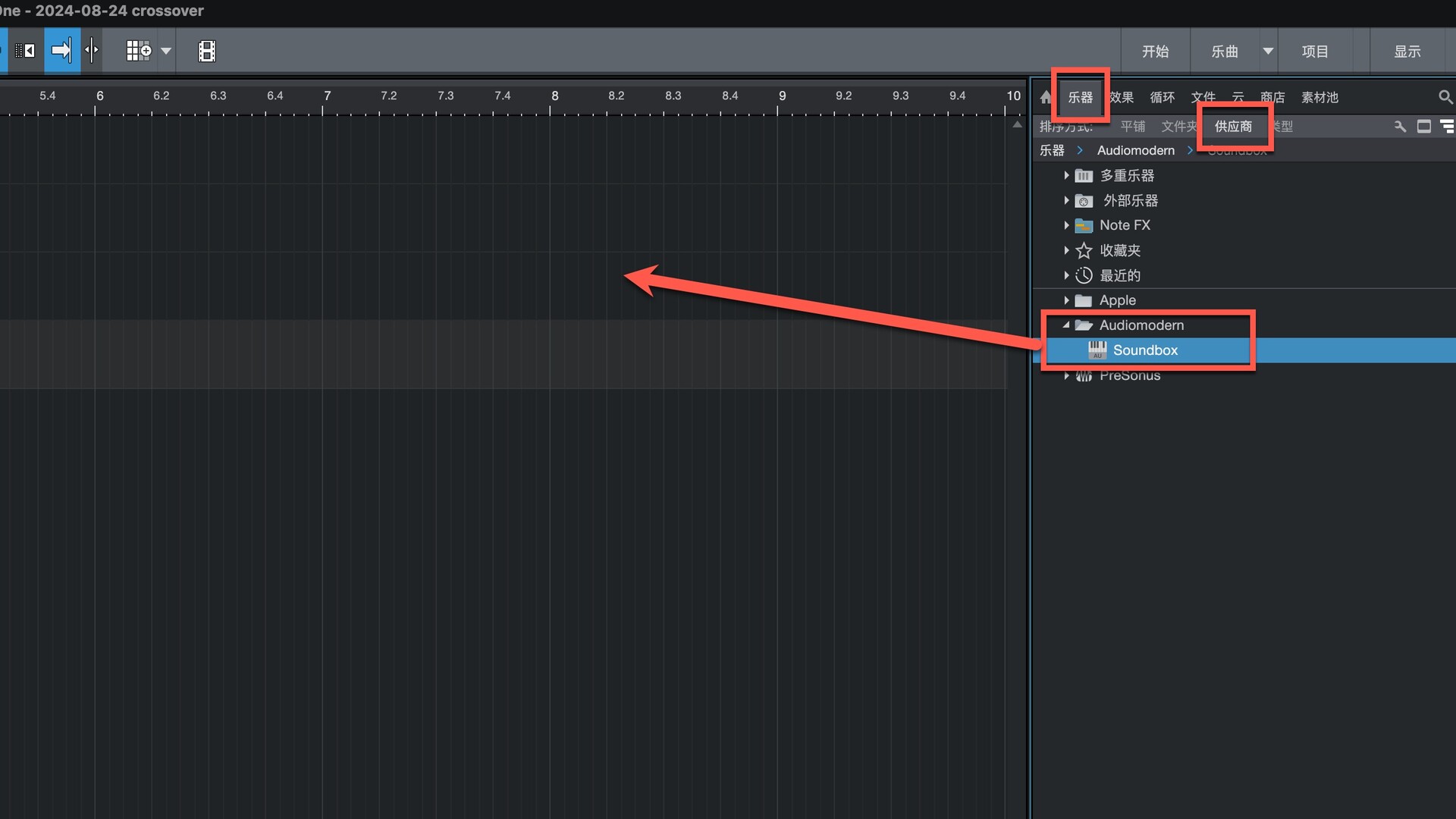 打开Studio One在乐器-供应商下即可找到插件,拖动到左侧即可