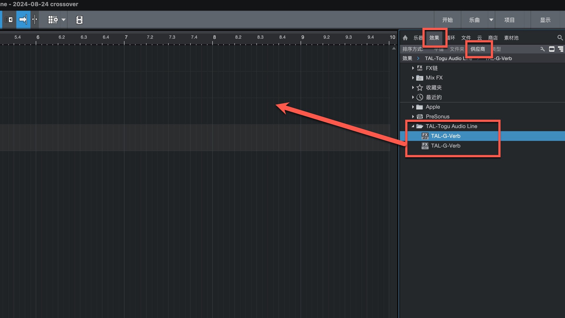 打开Studio One在效果-供应商下即可找到插件,拖动到左侧即可