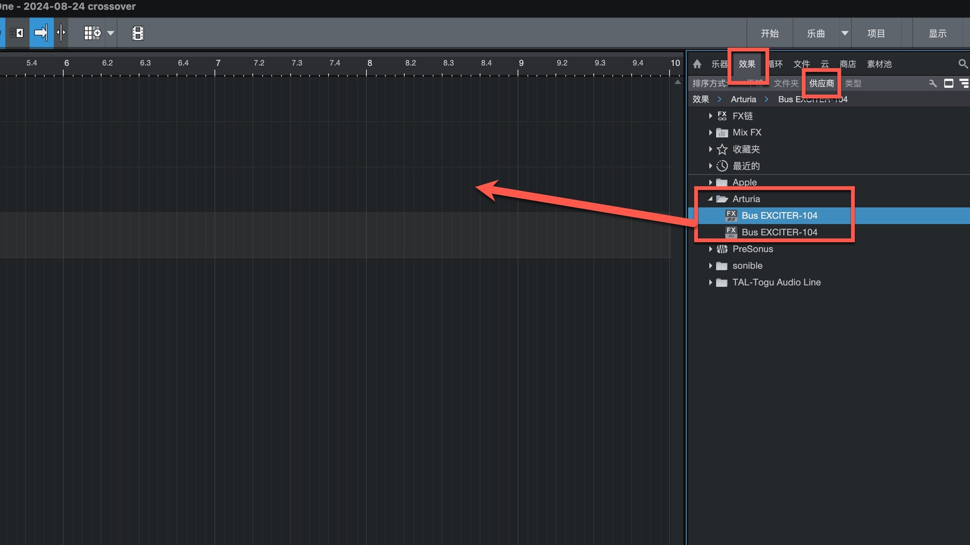 打开Studio One在效果-供应商下即可找到插件,拖动到左侧即可