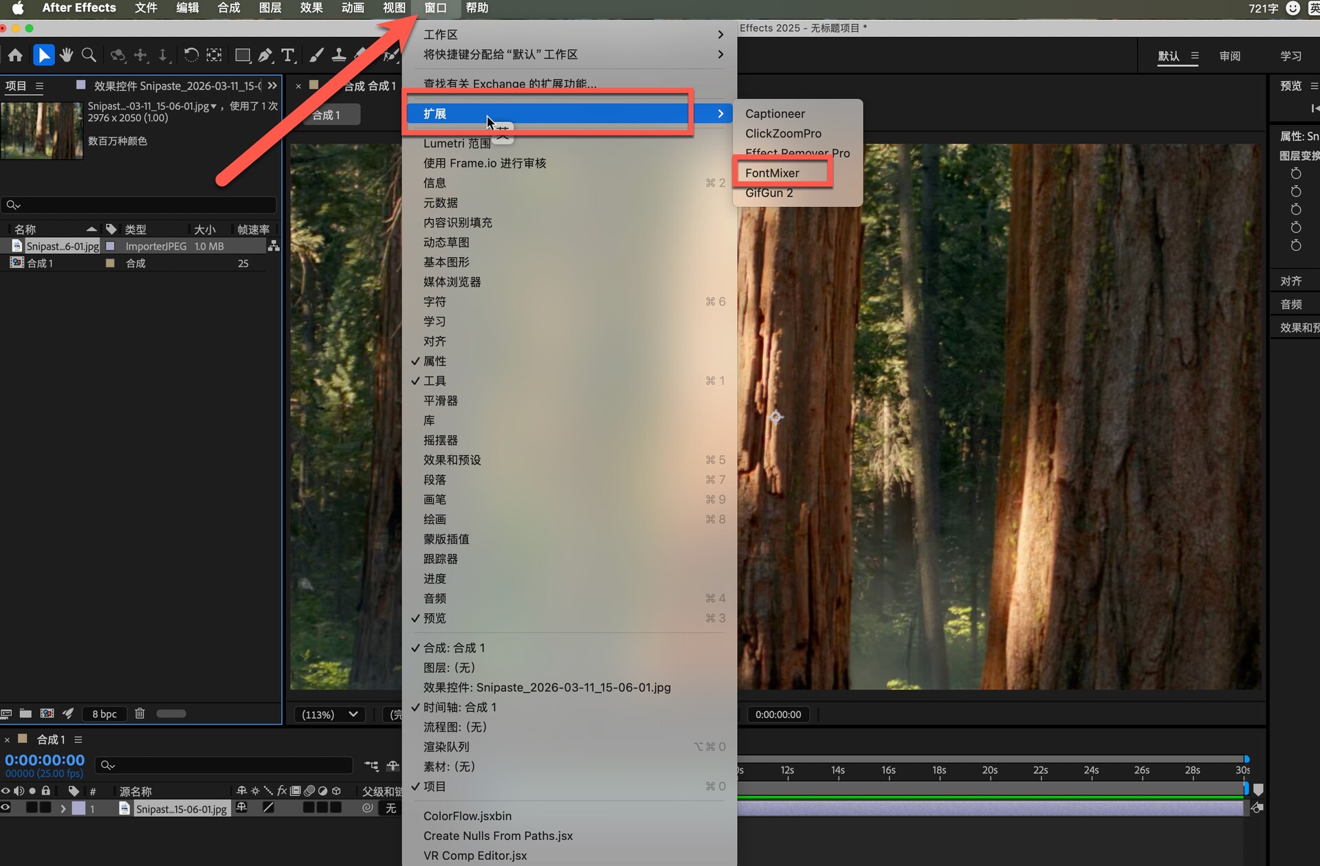 在软件顶部window窗口菜单下即可看到 FontMixer 脚本,如图所示:注意可能打开时间比较长,请耐心等几分钟。