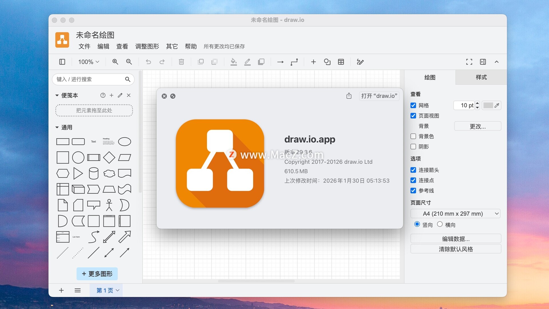 draw.io for Mac一款流程图绘制工具,提供了流程图,UML图等丰富的接口。它还支持第三方云存储,能够方便的将这些设计图分享给团队成员。并且它还是免费的。