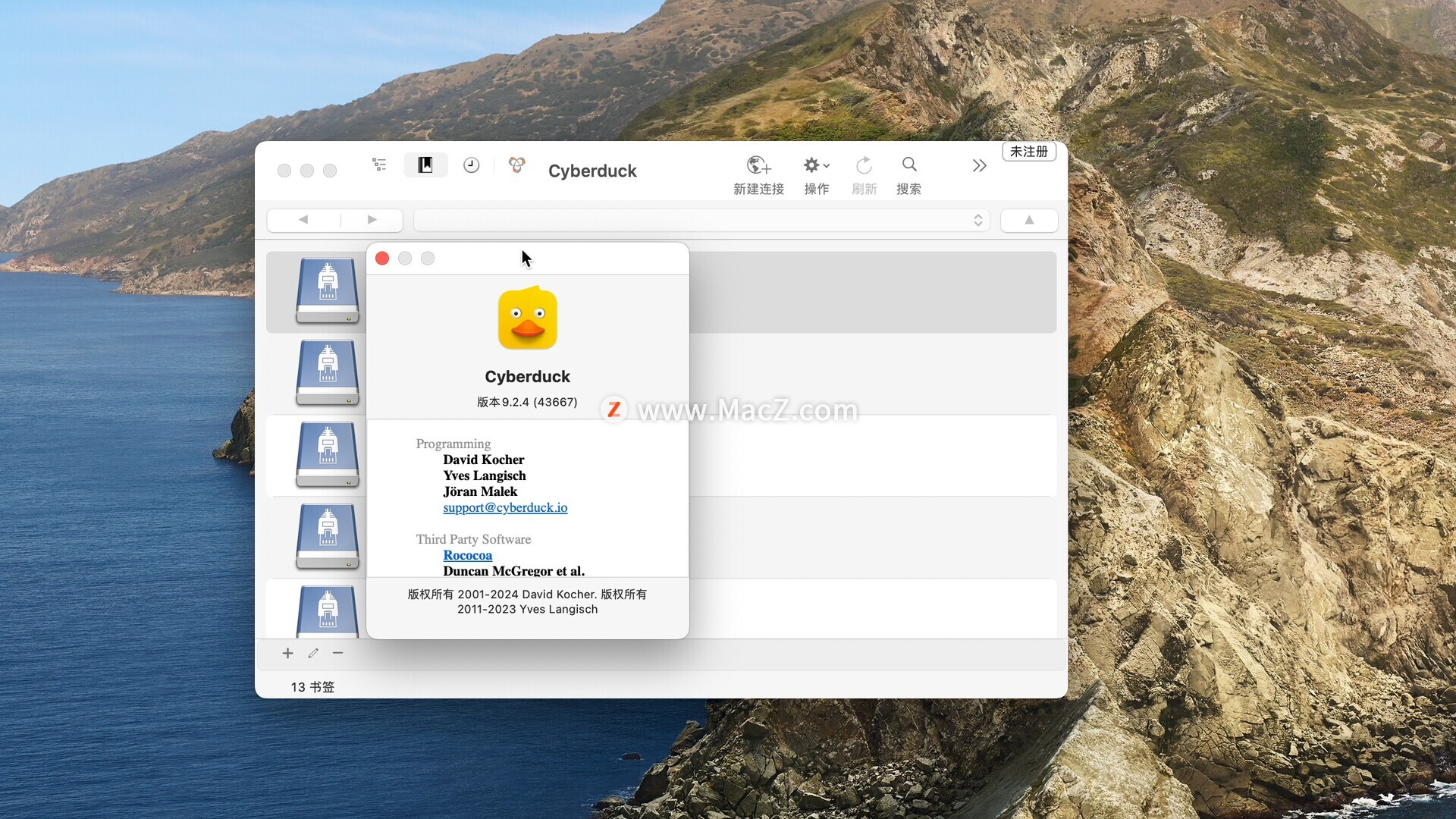 v8.7.0官方版Cyberduck for Mac拥有简单明了的操作界面,使用非常的简单,同时Cyberduck for Mac版还支持WebDAV 和 Amazon S3 浏览与文件的传输等,非常的优秀!测试环境:MacOS 13.2