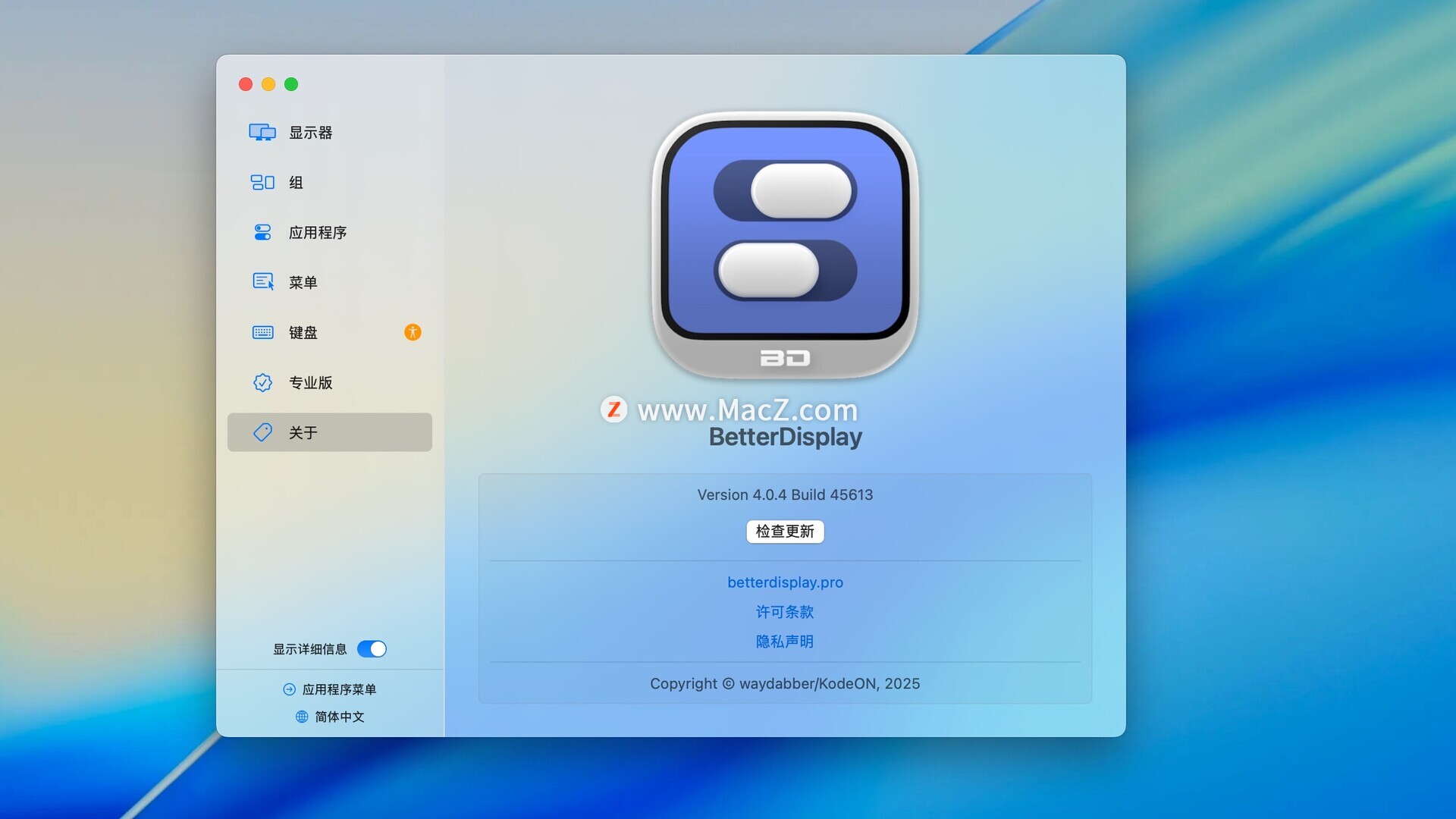 BetterDisplay Pro for mac一款显示器管理工具,它允许用户进行自定义分辨率设置、HDR/XDR亮度增强、虚拟屏幕创建、画中画功能、配置和EDID覆盖、DDC控制及色彩模式选择等多种功能。