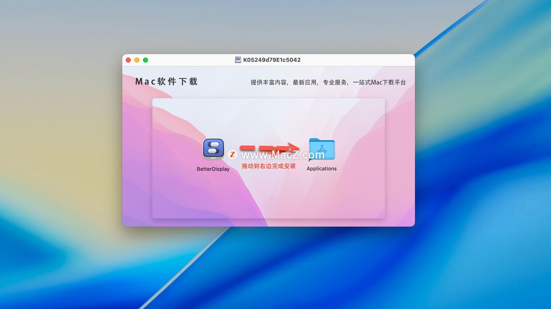 BetterDisplay专业版下载完成后打开,拖动左侧的软件到右侧应用程序中即可