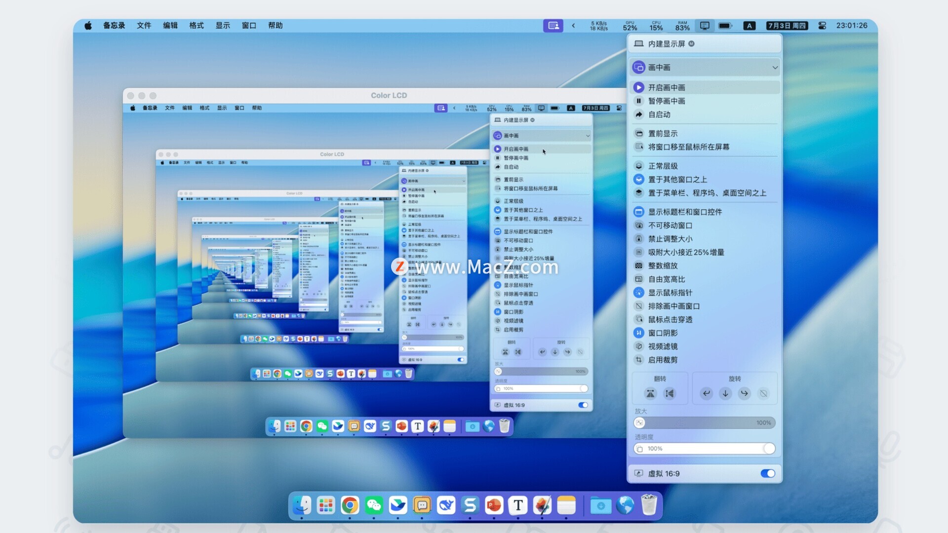 - 虚拟屏幕与画中画功能: 用户可以创建和管理虚拟屏幕,以及在显示器上生成画中画窗口,使任务管理更加灵活。