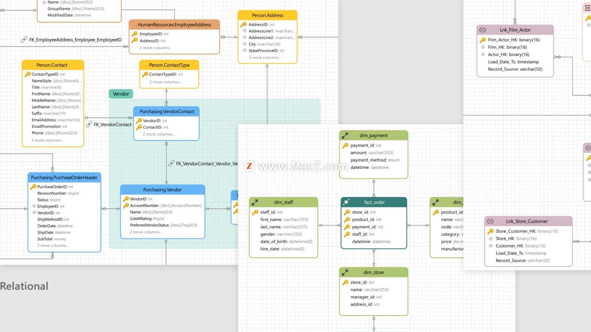 - 逆向工程是 Navicat Data Modeler 的主要功能之一。加载现有数据库结构并创建新的 ER 图。可视化数据库模型,以便您可以了解属性、关系、索引、唯一值、注释和其他对象等元素如何相互关联,而无需显示实际数据。Navicat Data Modeler 支持不同的数据库:直接连接、ODBC、MySQL、MariaDB、Oracle、SQL Server、PostgreSQL 和 SQLite。