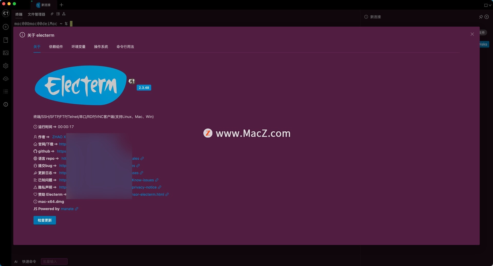Electerm for Mac一款非常好用的终端模拟器/免费ssh客户端,是一款集终端模拟器、文件管理器、ssh远程连接、sftp客户端为一体的工具,可以让您双击直接编辑远程文件,使用内置编辑器编辑本地文件,使用publickey +密码验证,Zmodem,还有自定义终端样式,全局/会话代理,将书签/主题/快速命令同步到github secret gist等功能,非常好用!测试环境:MacOS 15.0