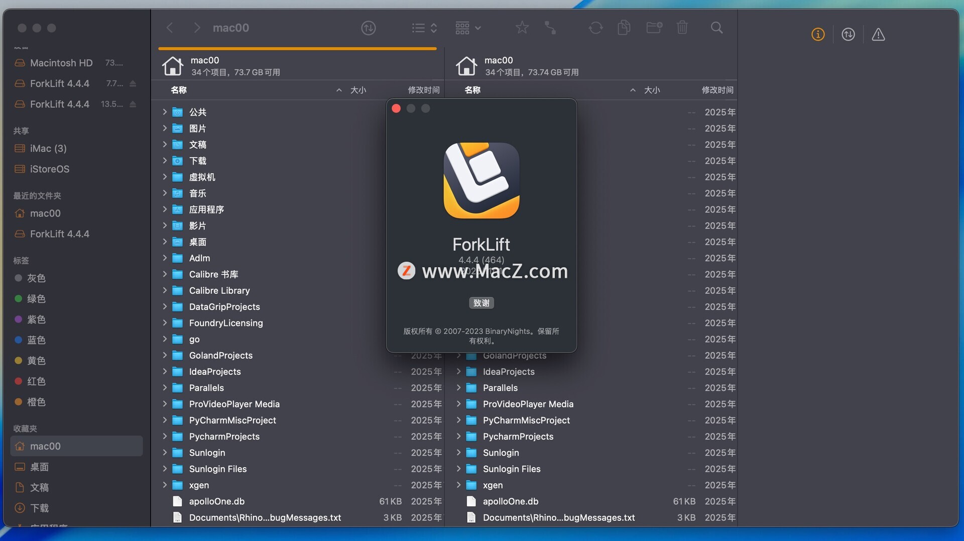 Forklift Mac破解版是Mac os系统上一款强大的文件管理程序,弥补了Finder文件管理比较单一的功能,强大到能远程连接Ftp、SFTP、Amazon S3、WebDAV、SMB、NIS、AFP等网络共享服务协议。测试环境:MacOS 15.5