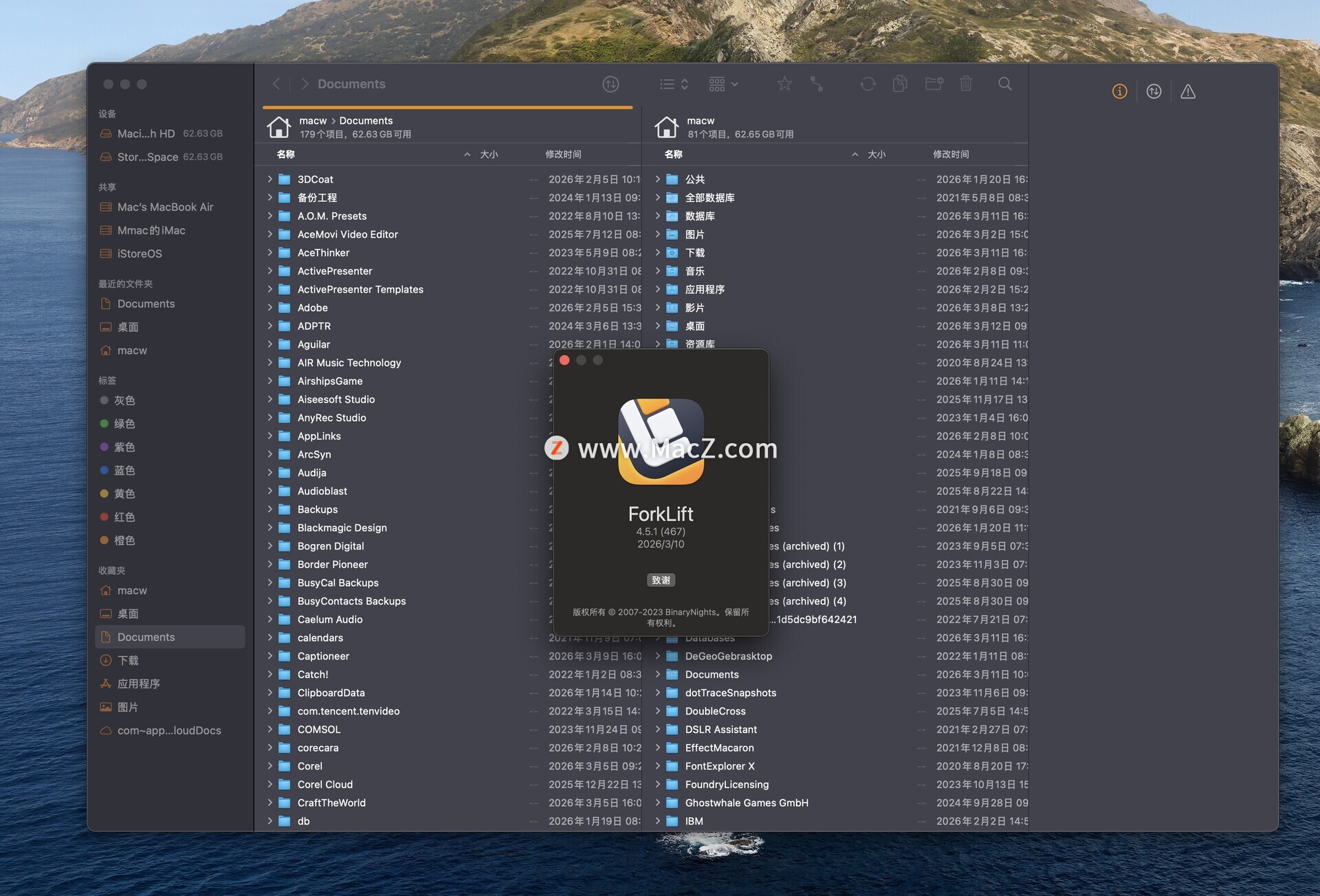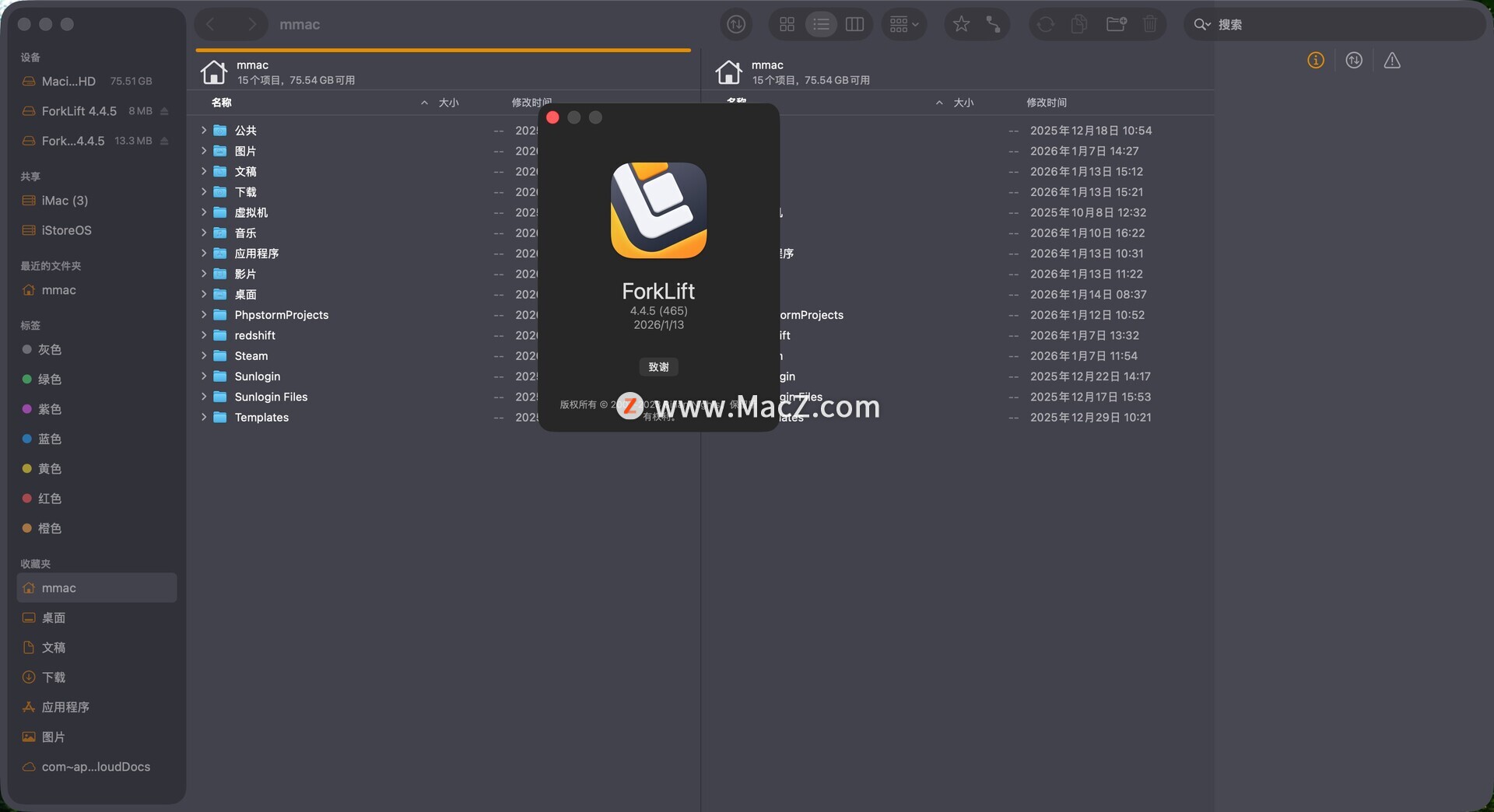 Forklift Mac破解版是Mac os系统上一款强大的文件管理程序,弥补了Finder文件管理比较单一的功能,强大到能远程连接Ftp、SFTP、Amazon S3、WebDAV、SMB、NIS、AFP等网络共享服务协议。测试环境:MacOS 26.2