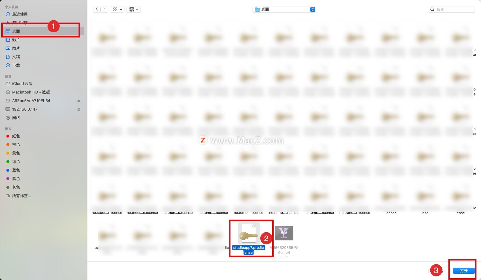 按照下面的步骤,找到桌面上名为studioapp6.pro.license的密钥文件,并点击打开(右上角可以搜索文件名字)