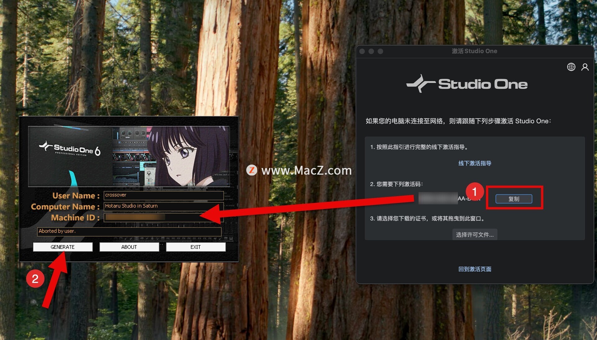 将激活码复制到Machine ID。点击generate生成Studio One 6密钥