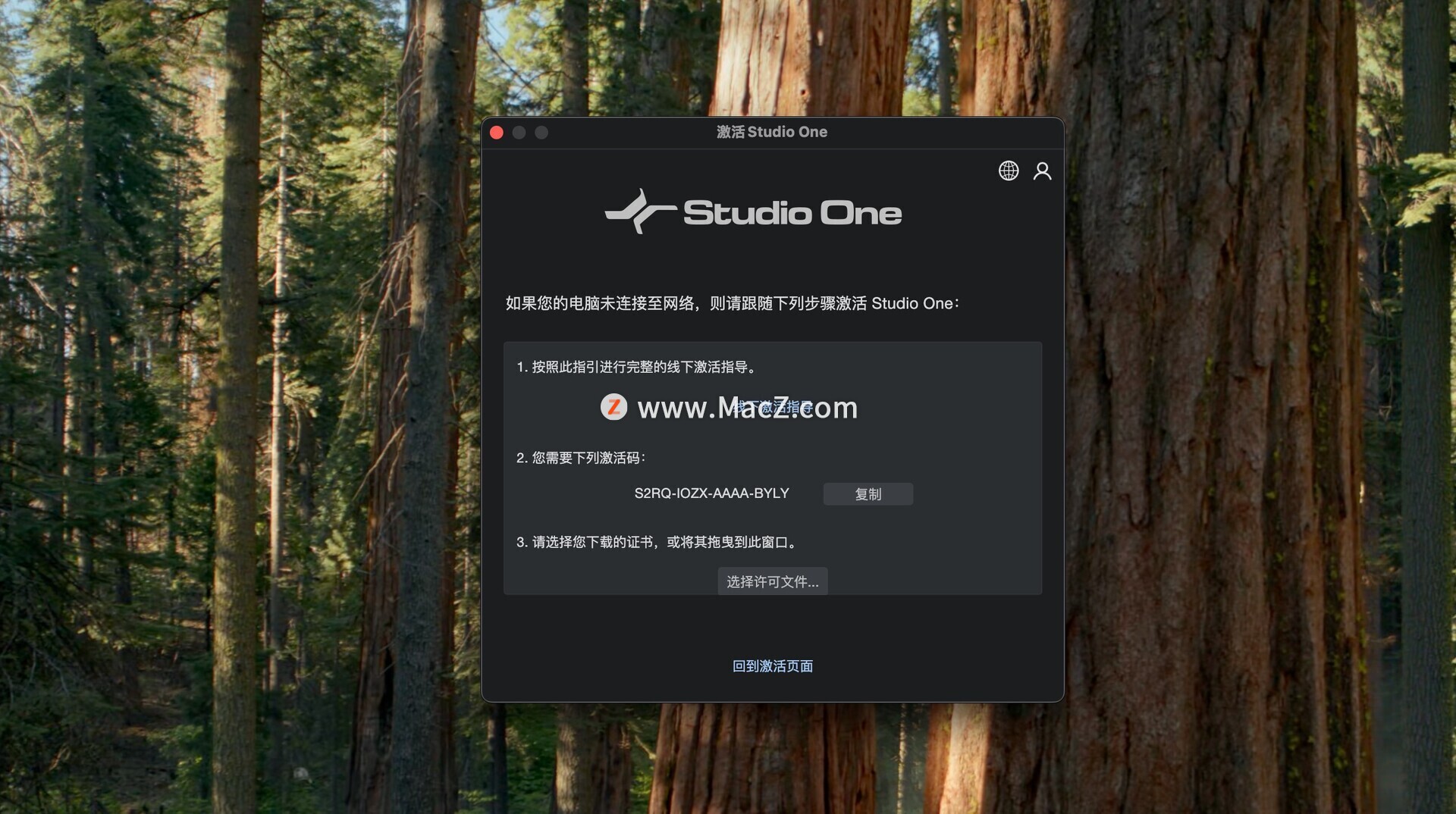 此时桌面会自动生成Studio One 6密钥,重新回到Studio One 6激活页面。并点击其中的选择许可文件