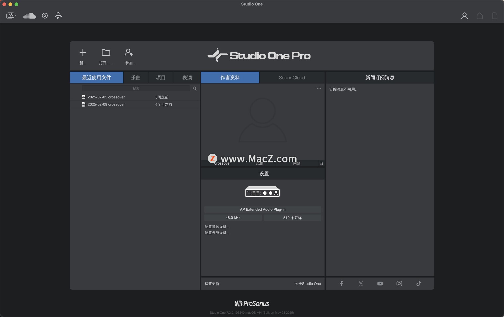 Studio One 6是一款非常专业的音乐创作编辑软件。为用户提供了所有一切你所需要创作的功能,包括所有的歌曲、项目、仪表板等动能,而且还自定义添加配置文件,良好的界面交互和丰富的功能板块。测试环境:MacOS 13.6