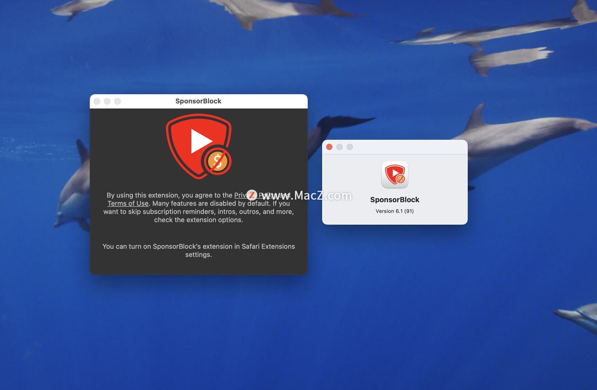 打开SponsorBlock for YouTube会提示您可以在 Safari 扩展首选项中打开 Sponsor Block 的扩展,在Safari 浏览器中选择偏好设置``扩展勾选SponsorBlock for YouTube for Mac即可