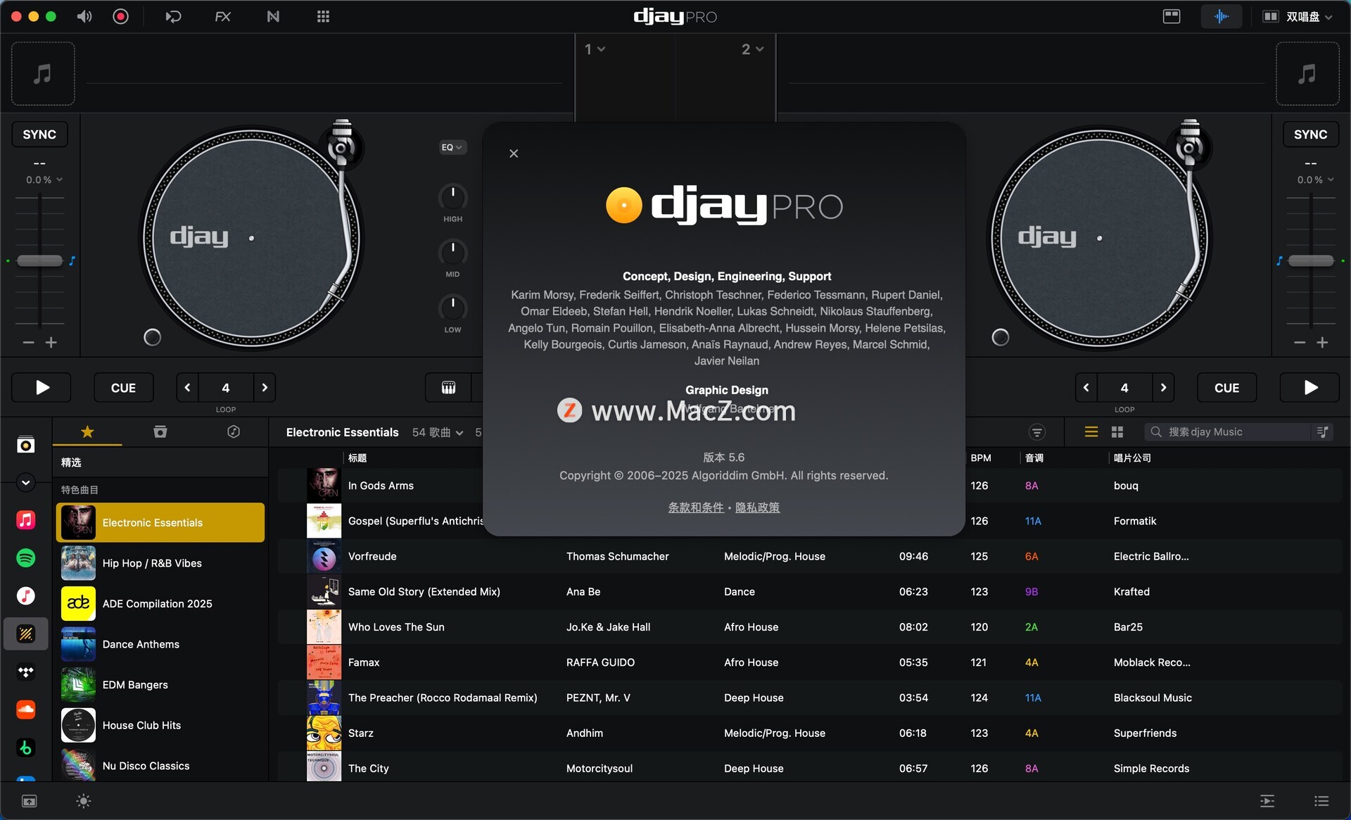 总之,Algoriddim djay Pro AI for Mac是一款功能强大、易于使用的DJ软件,适用于Mac用户。它可以帮助用户轻松制作出专业级别的音乐混音,同时还提供了许多其他实用的功能和工具,让用户可以制作出更加出色的音乐作品。测试环境:MacOS 15.5