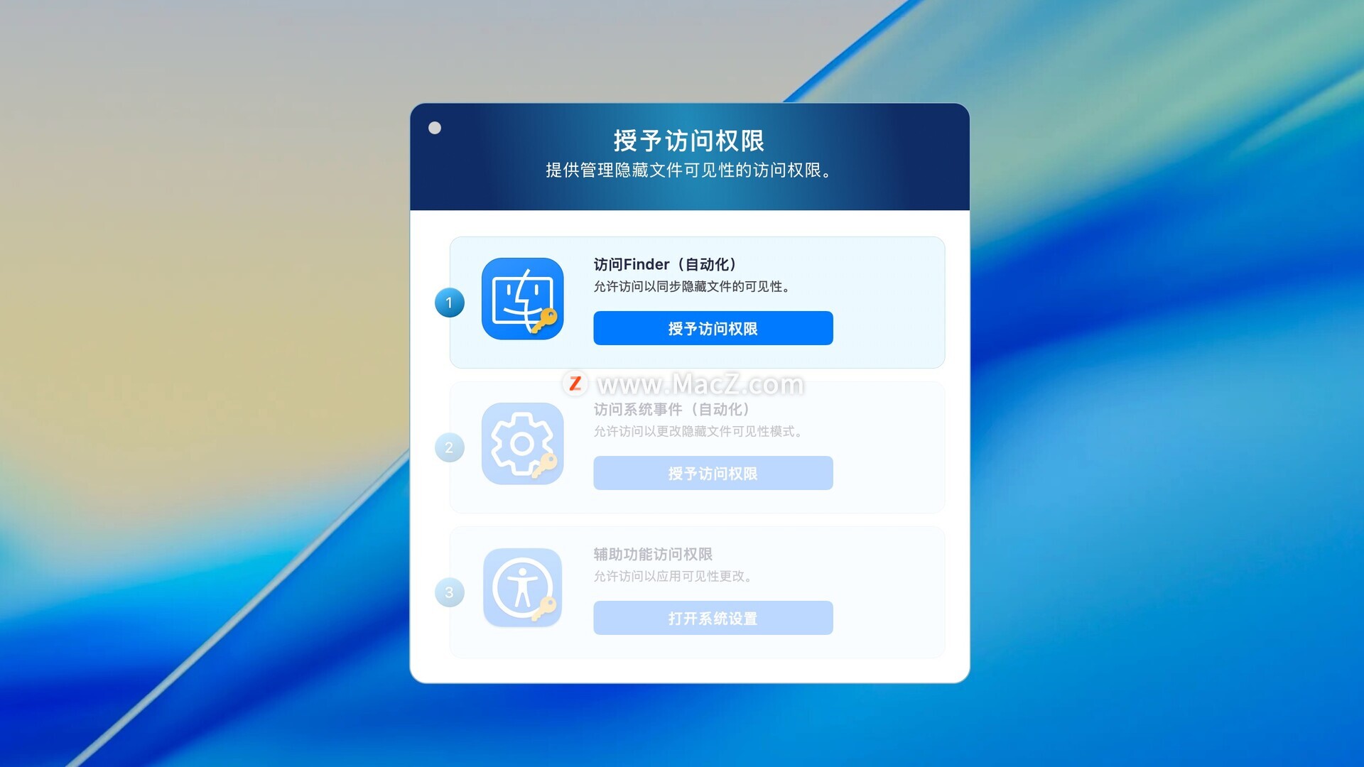 该应用程序集成到 Finder,并将自己的命令添加到上下文菜单。现在,您只需从 Finder 更改文件隐藏属性即可。