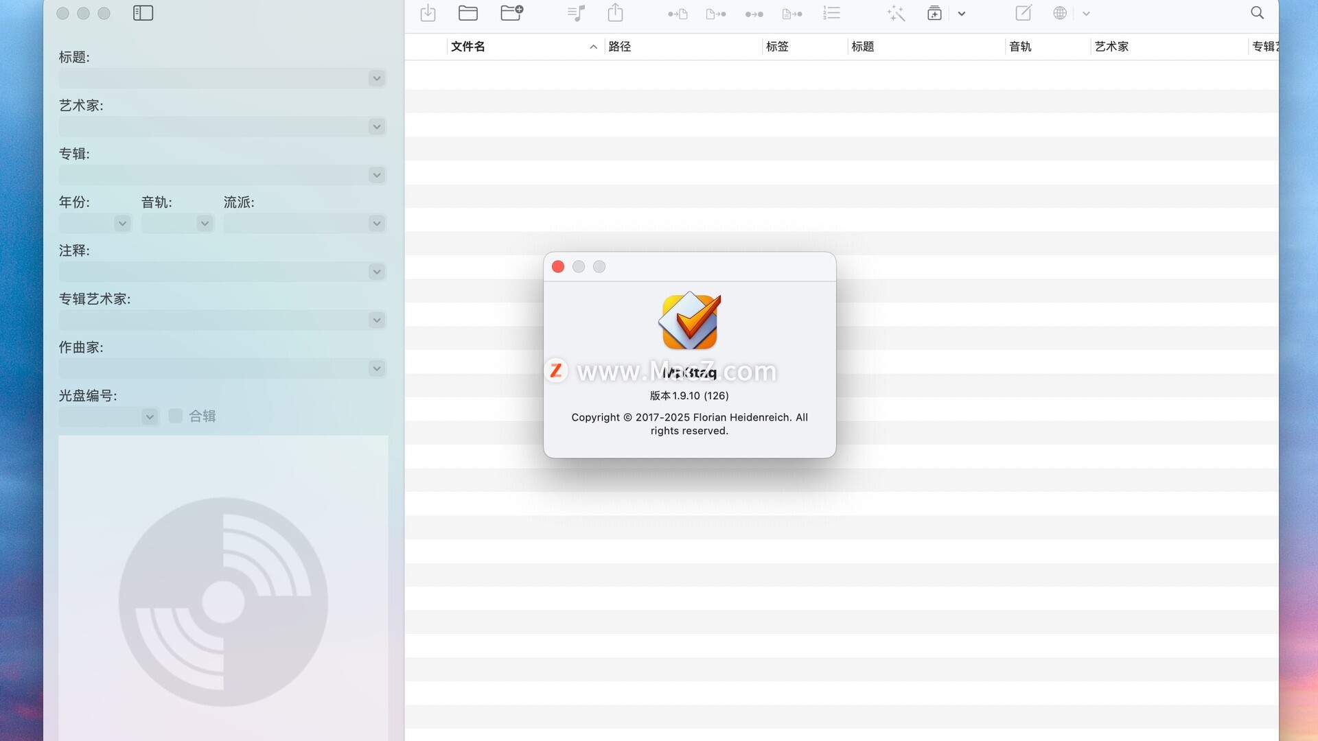 Mac的Mp3tag支持文件列表的自定义列。