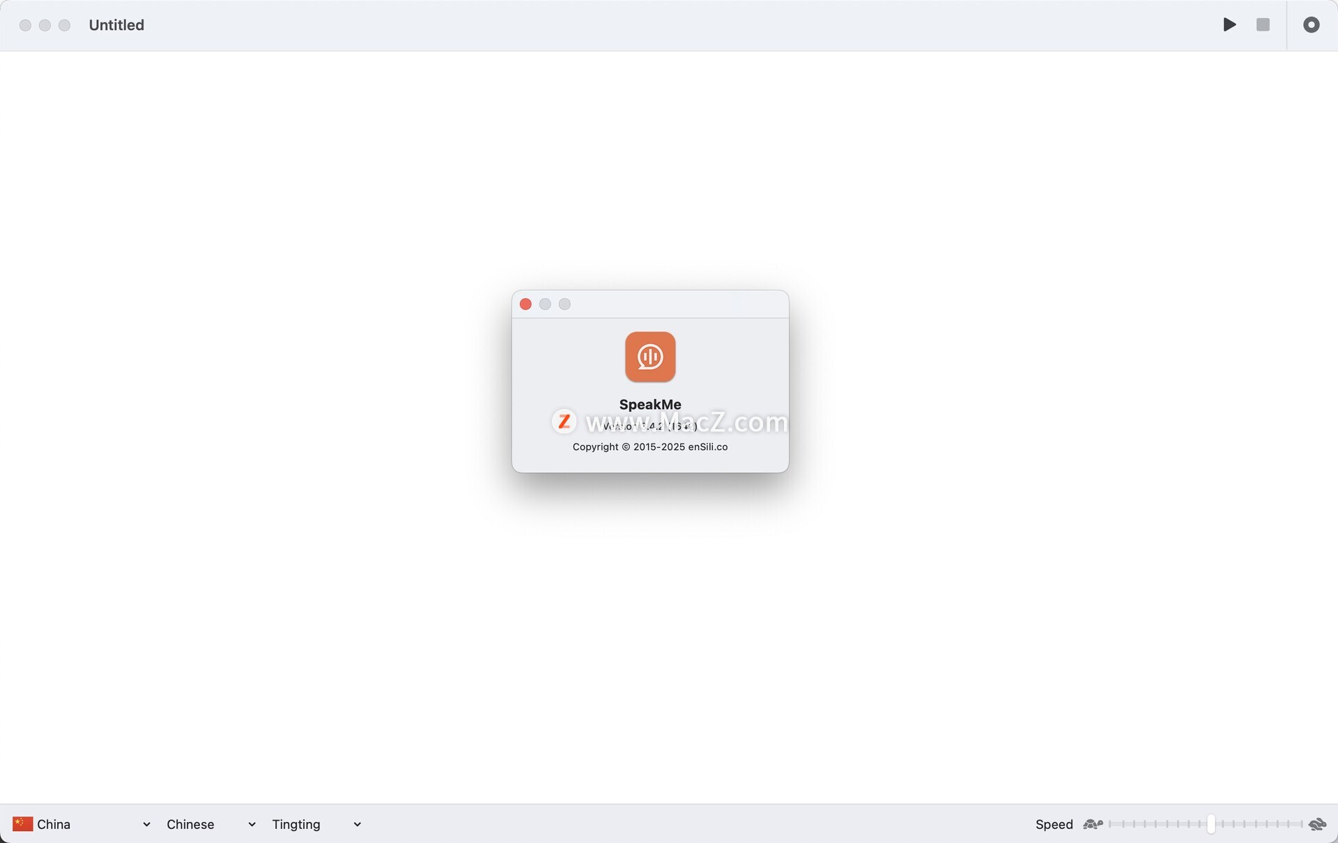 SpeakMe for Mac是一款功能强大的文本语音转换工具,能够将文本内容转化为自然流畅的语音,方便用户进行阅读和听写。它支持多种语言和语音风格,可以根据用户需求进行自定义设置,满足不同场景的需求。同时,SpeakMe还具备直观易用的用户界面,支持更改讲话速度,导出为多种音频格式,并提供定时关机等实用功能。无论是用于学习、工作还是娱乐,SpeakMe for Mac都能帮助用户提升效率和体验。测试环境:MacOS 15.0