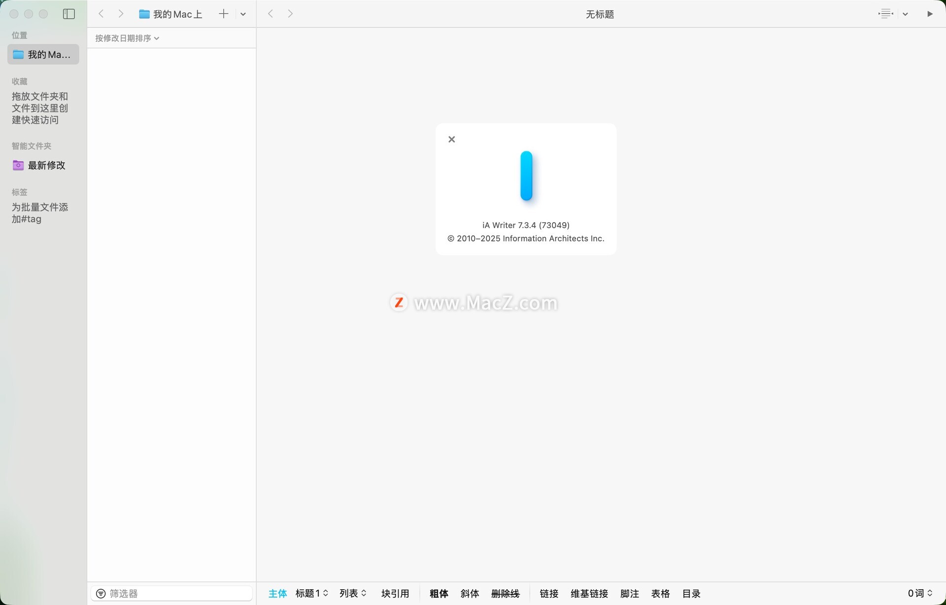 此外,iA Writer for Mac还支持云同步功能,方便用户在不同设备之间无缝切换。测试环境:MacOS 26.2