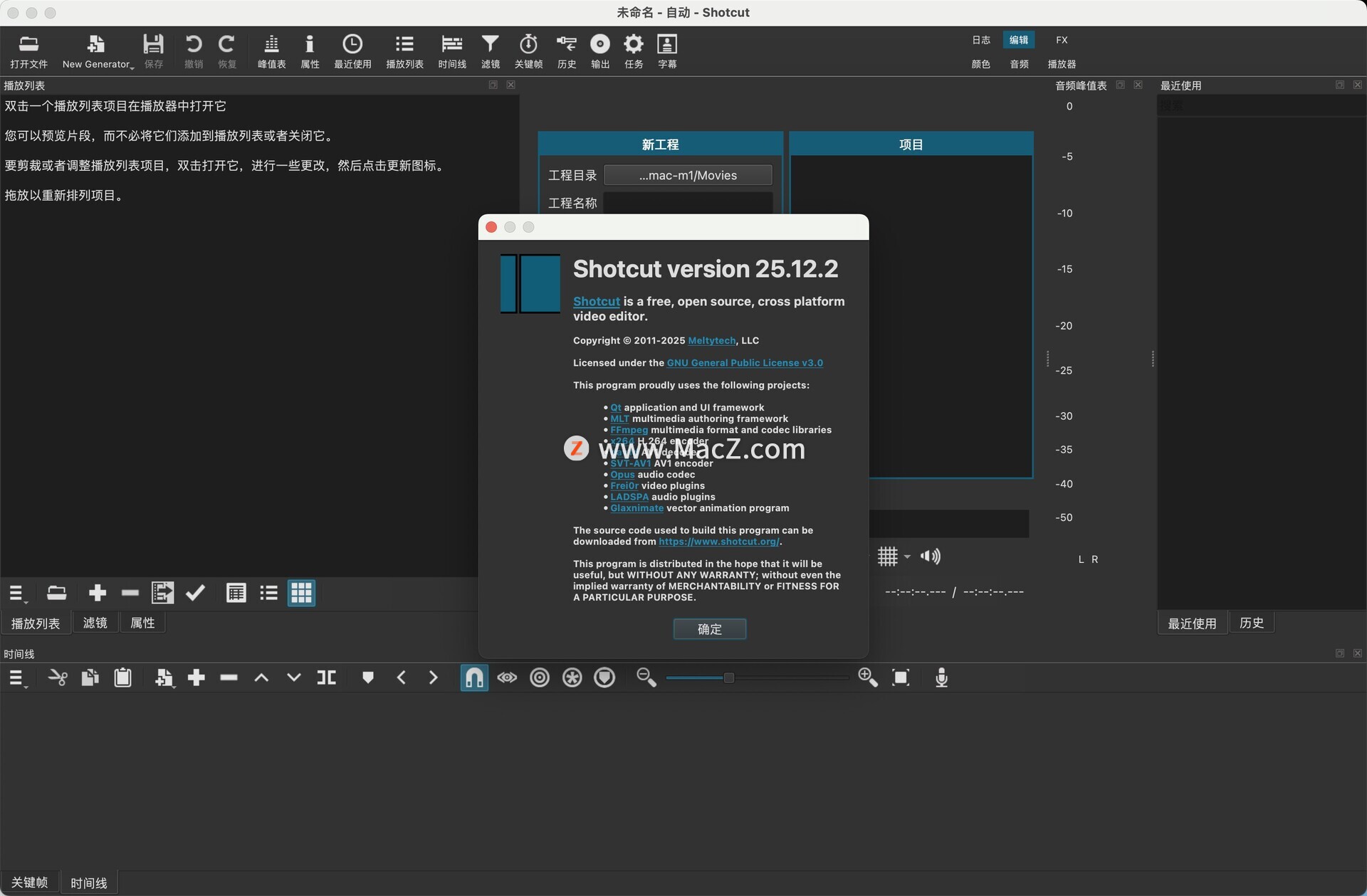 Shotcut for mac虽然免费但也提供了诸如:GPU加速、拖拽处理视频、视频特效滤镜等功能,使用起来非常的简单方便。Shotcut对于日常生活的视频剪辑需求是绰绰有余的,而且不用花费很多钱去购买专业的视频编辑软件。