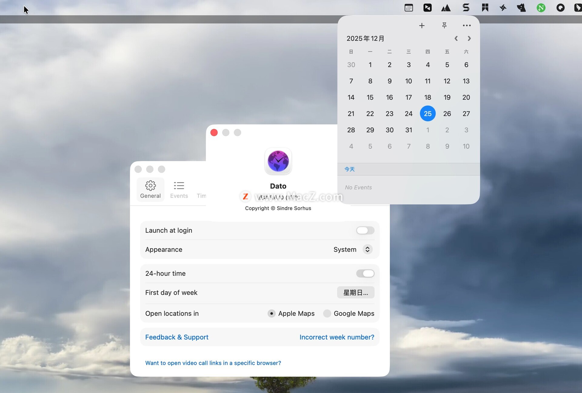总的来说,Dato是一款多功能的中文日历和提醒应用程序,旨在帮助用户更好地管理时间和任务。它的直观界面和强大的功能使其成为Mac用户提高工作效率和日常组织的理想选择。测试环境:MacOS 15.5
