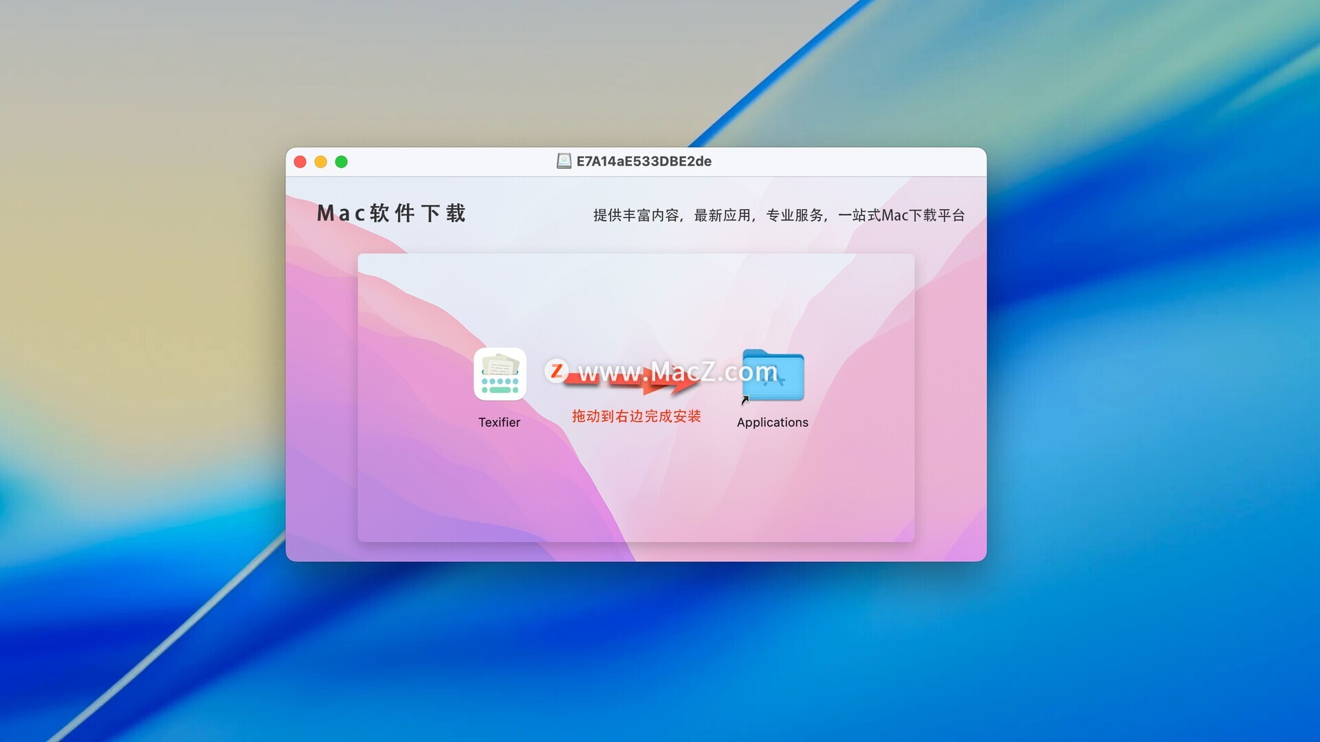 Texpad for mac破解版下载完成后打开,拖动左侧的软件到右侧应用程序中即可