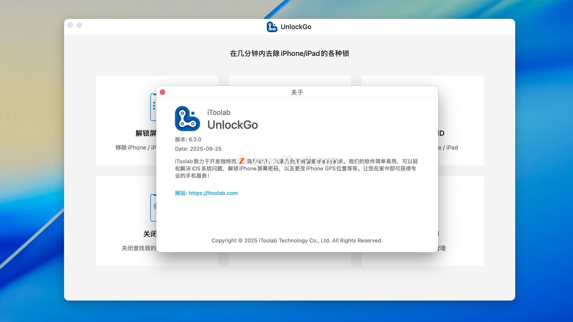 这款软件采用了向导式界面,用户只需连接iOS设备后,按照提示进行简单的几步操作,即可完成整个解锁过程。UnlockGo for Mac不仅易于使用,而且功能强大,能够在几分钟内解决用户的iPhone密码问题。测试环境:MacOS 15.5