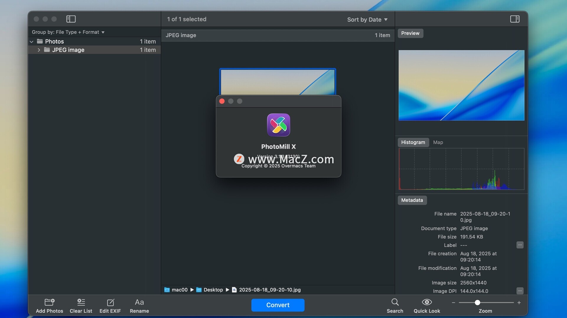 PhotoMill X mac破解版是Macos系统上一款图片批量处理工具,可以帮助用户在照片上添加水印、日期、转换图像格式、调整图片亮度等多种便捷功能。测试环境:MacOS 15.5