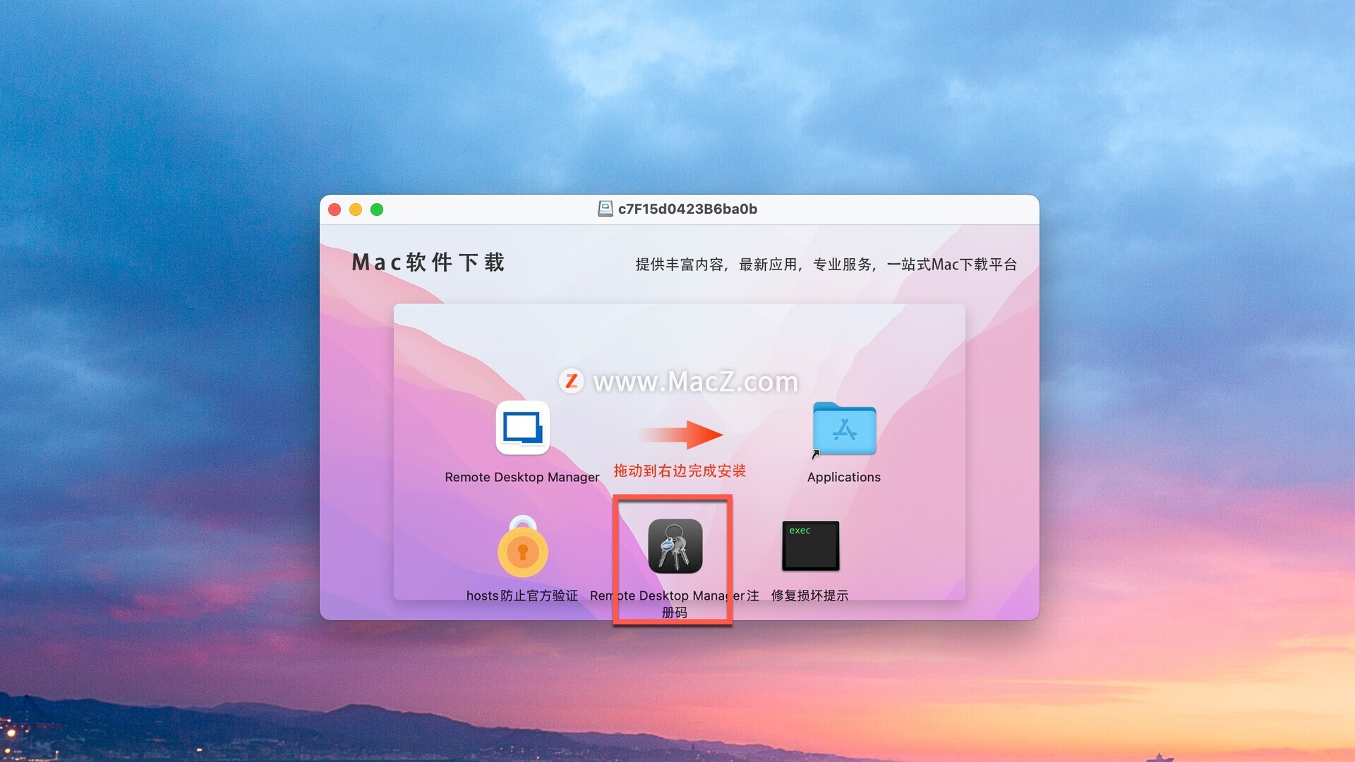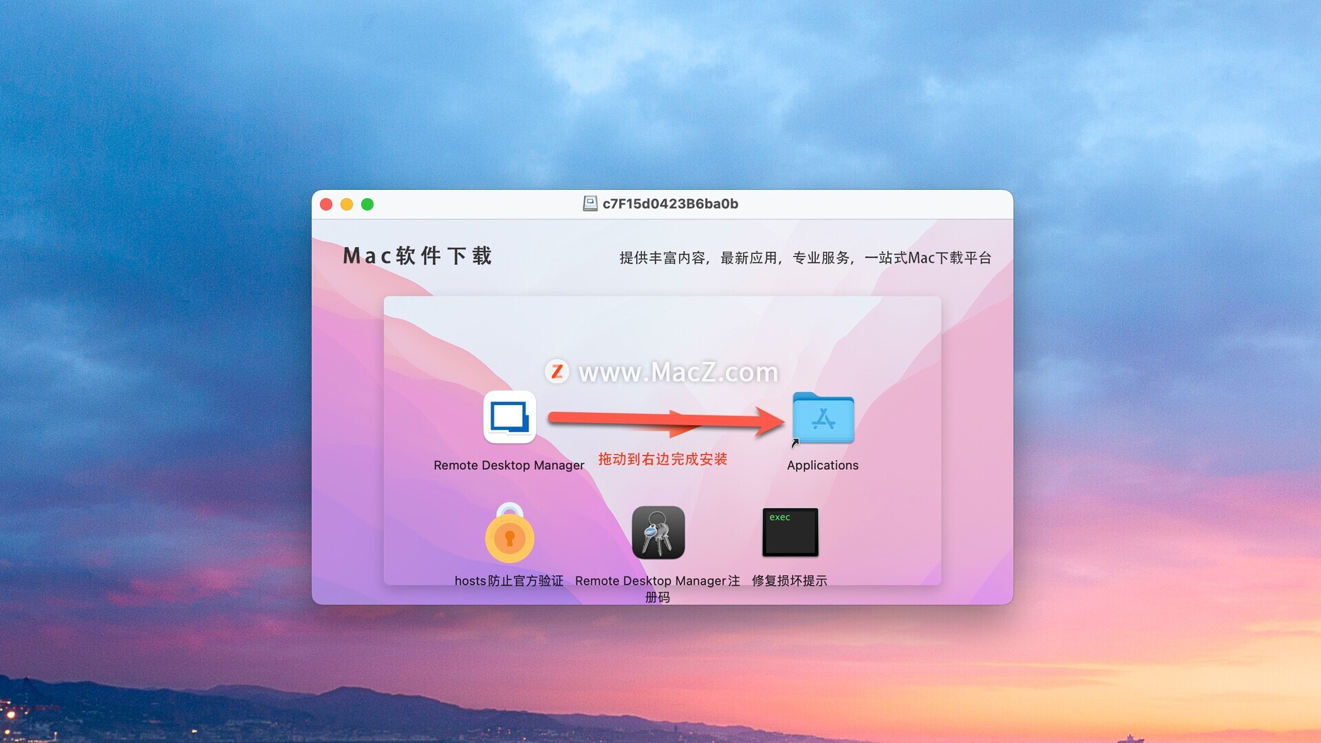 remote desktop manager mac 破解版软件包下载完成后打开,将左侧的Remote Desktop Manager拖到右边的应用程序中进行安装。
