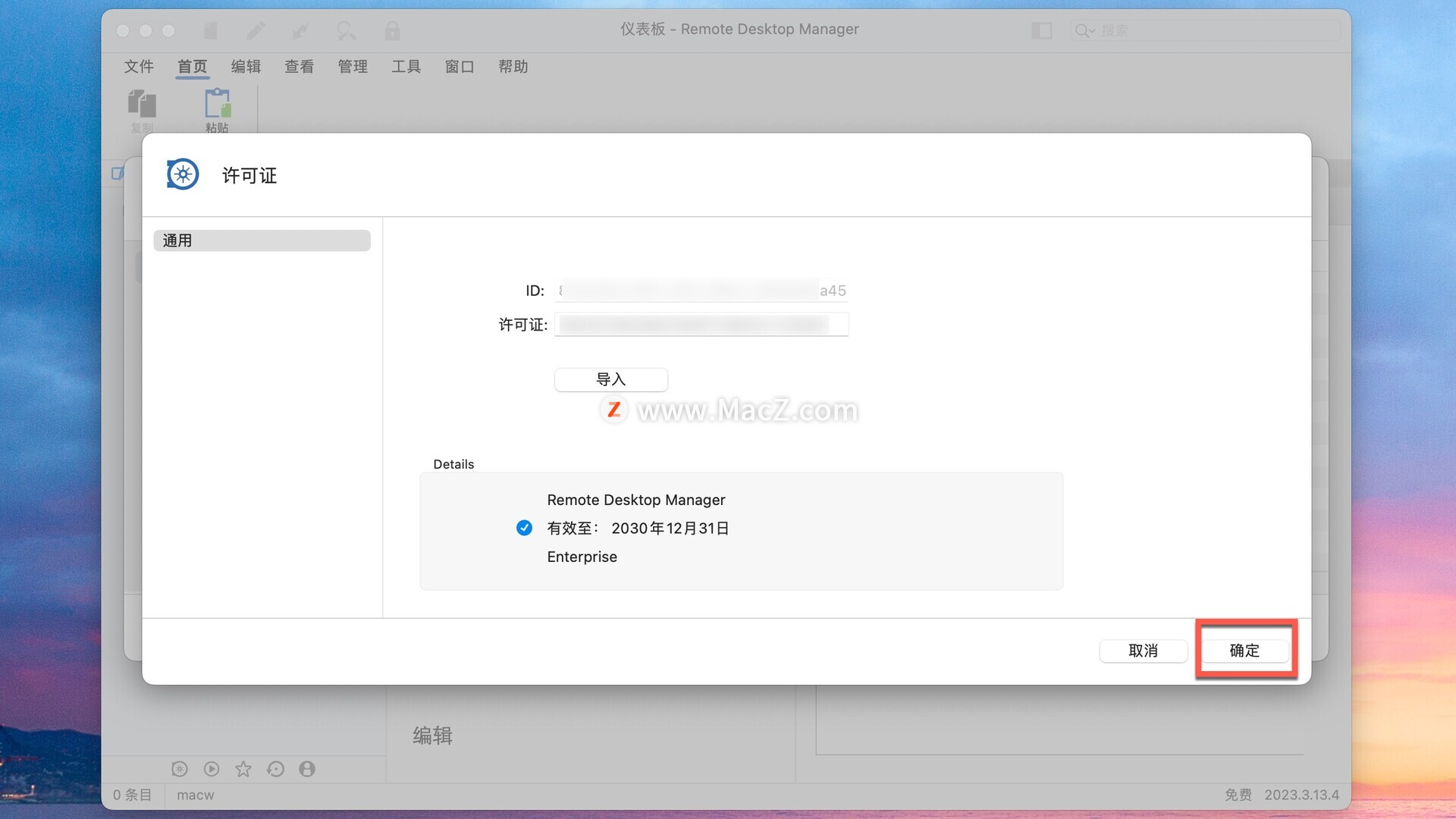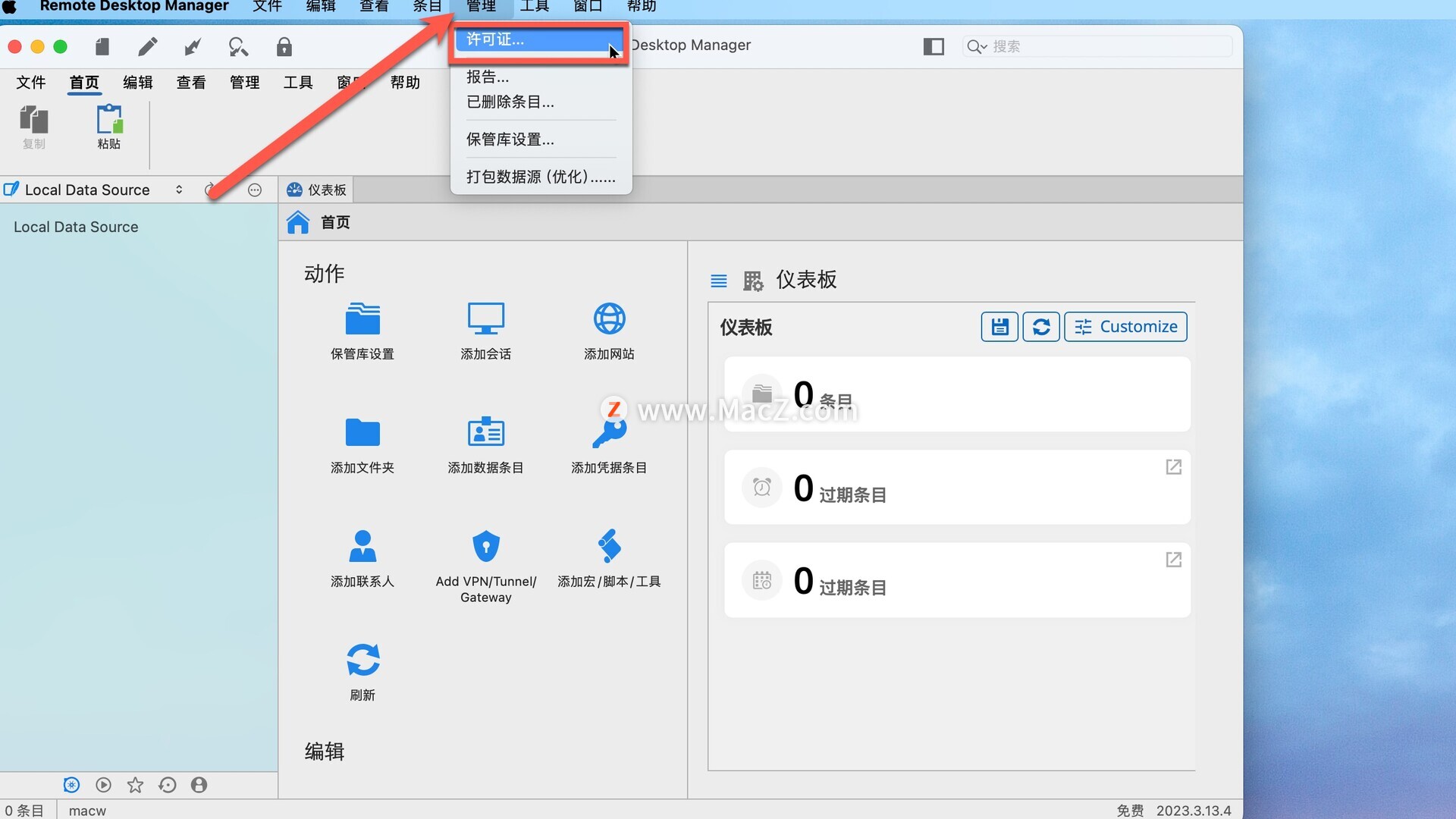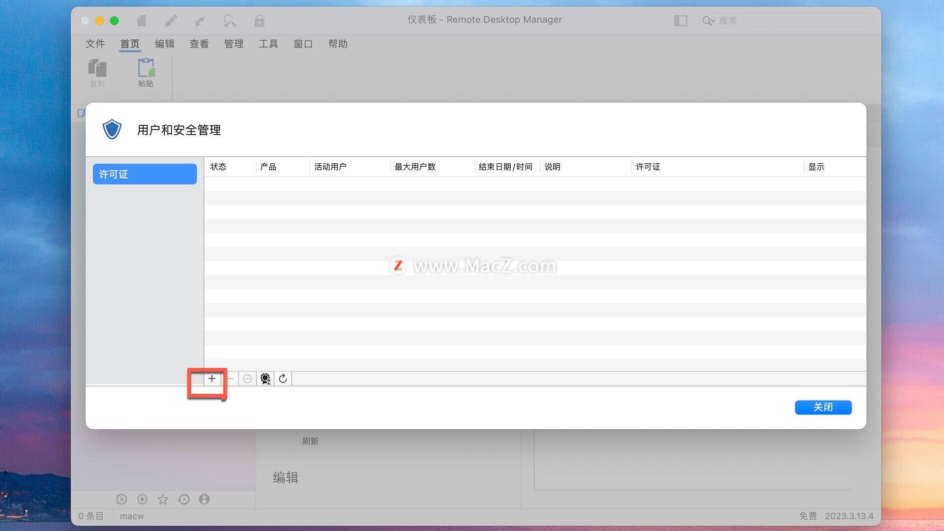 在应用程序中找到安装的remote desktop manager for mac,在菜单栏找到管理-许可证