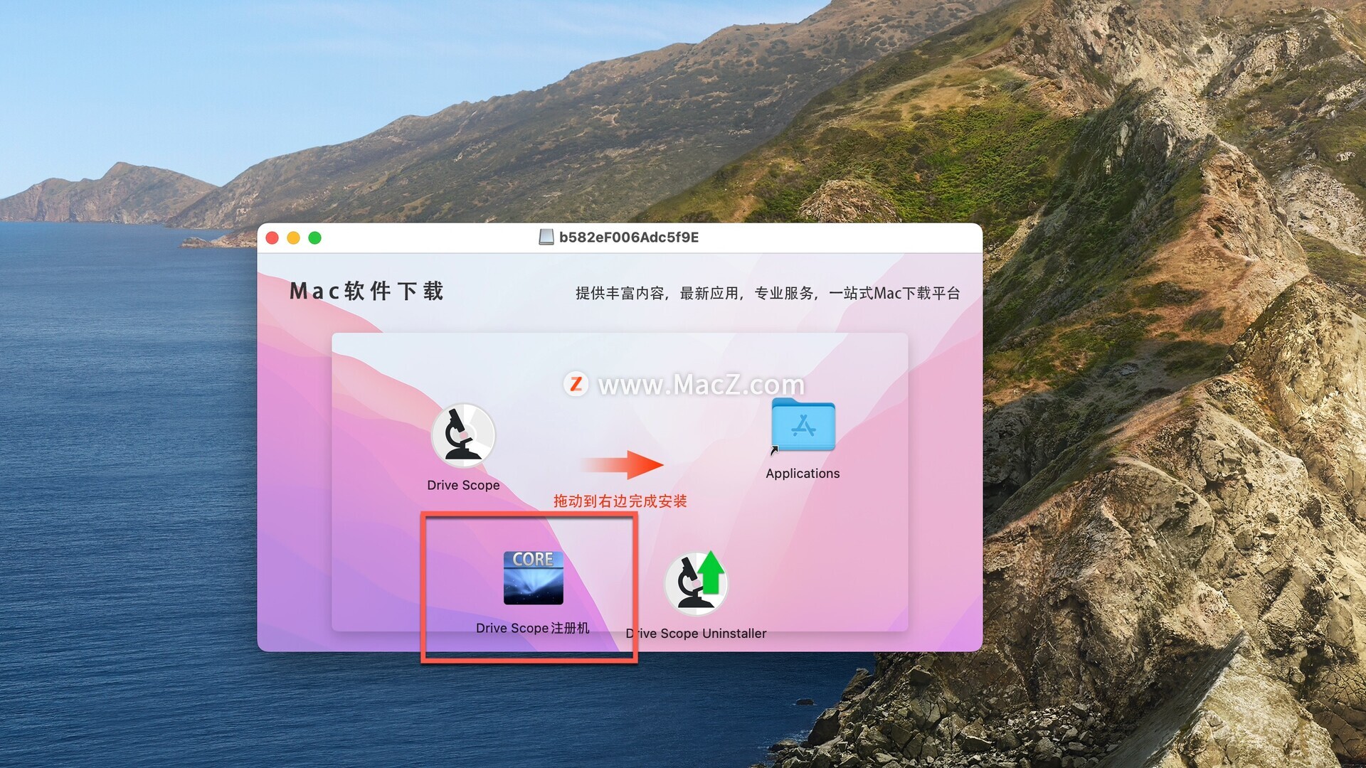 Drive Scop破解版下载完成后打开,将左侧Drive Scope拖动到右侧应用程序中进行安装