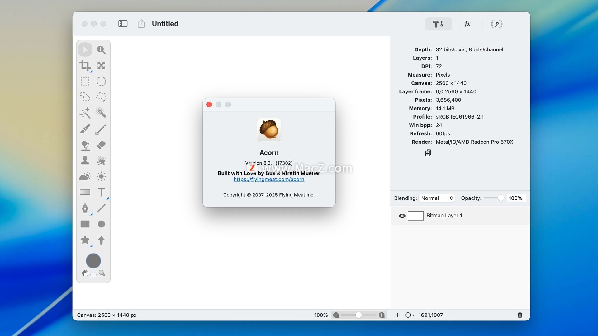 如果你不想使用巨大的 Photoshop,这款mac图像处理软件Acorn mac版是不错的替代品。它的设计目标就是成为 Photoshop 的轻量替代者,拥有所有Photoshop的基础工具和滤镜效果,而且支持图层。