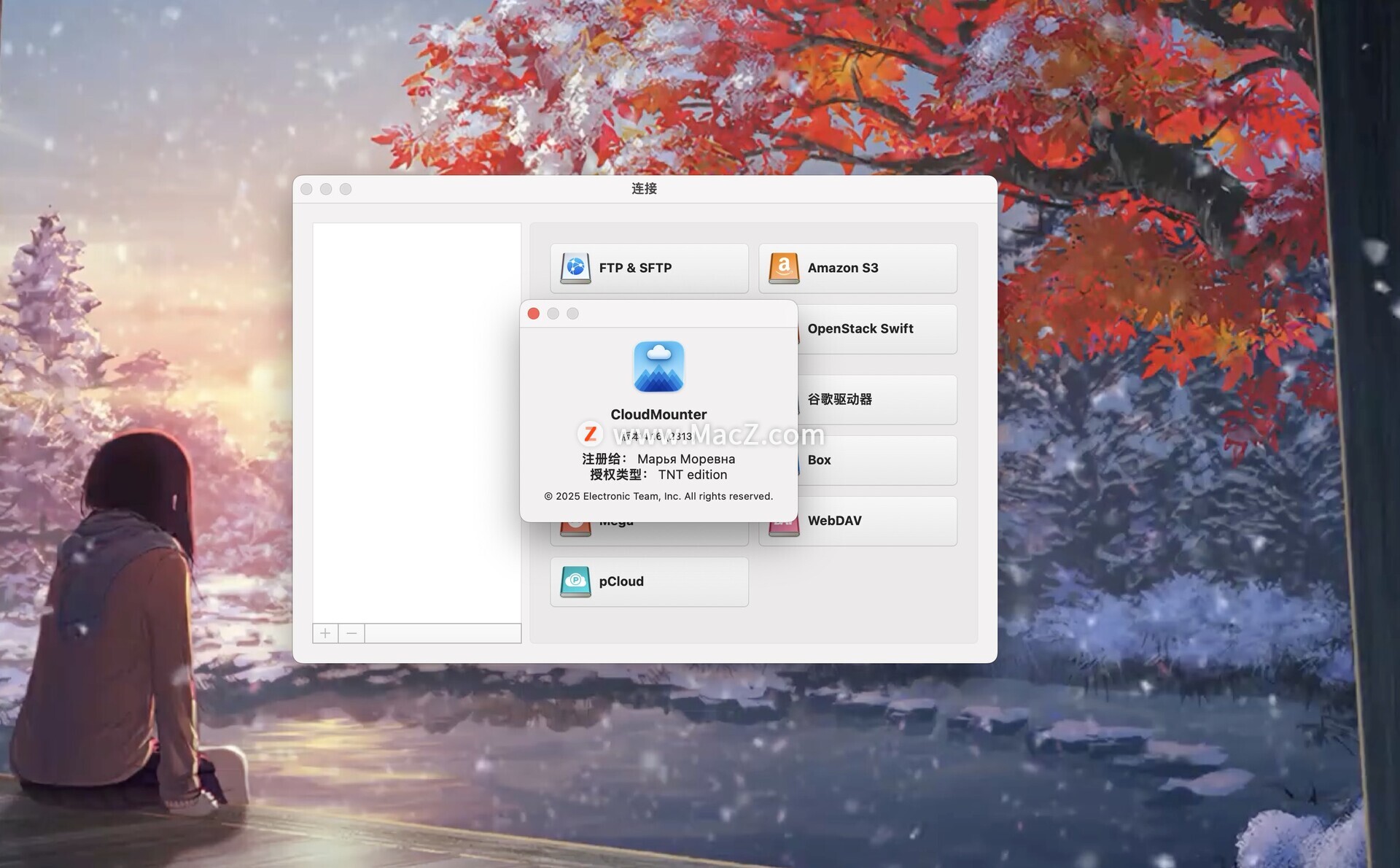 CloudMounter mac版是Macos上一款云盘本地加载工具,CloudMounter mac下载用于将云存储和Web服务器作为本地磁盘安装到Mac。CloudMounter for mac通过让您在舒适的Finder中与云和远程服务器进行通信,使得与远程主机一起工作就像数据存储在您的计算机上一样简单。测试环境:MacOS 14.1