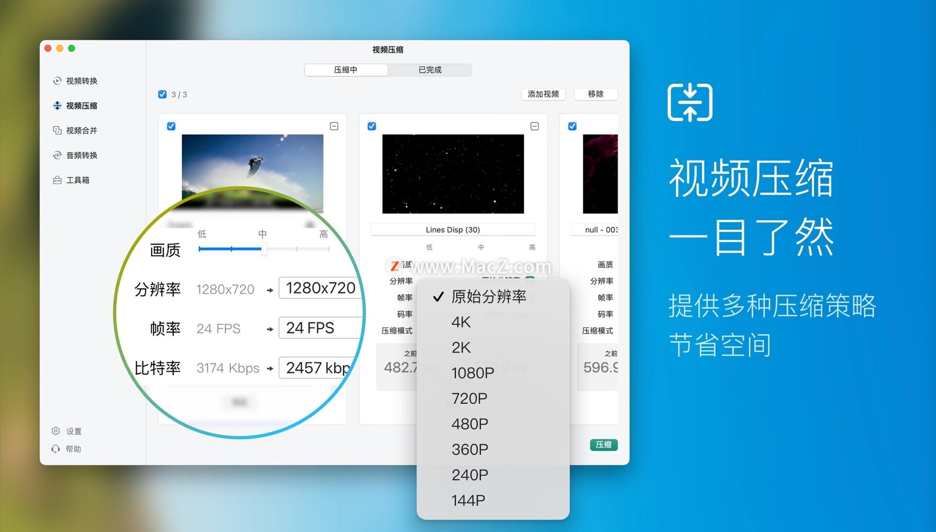 - 视频文件压缩可帮助您减小视频文件的大小,从而节省硬盘空间。