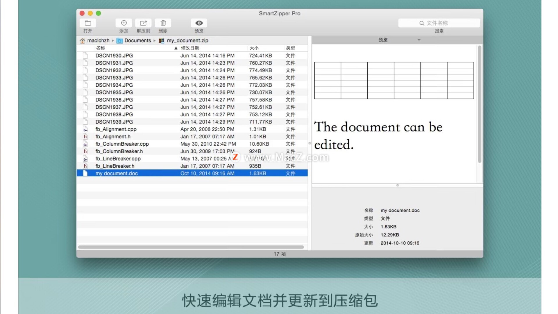 保护你的数据:Smart Zipper可以创建一个密码来保护你的数据。