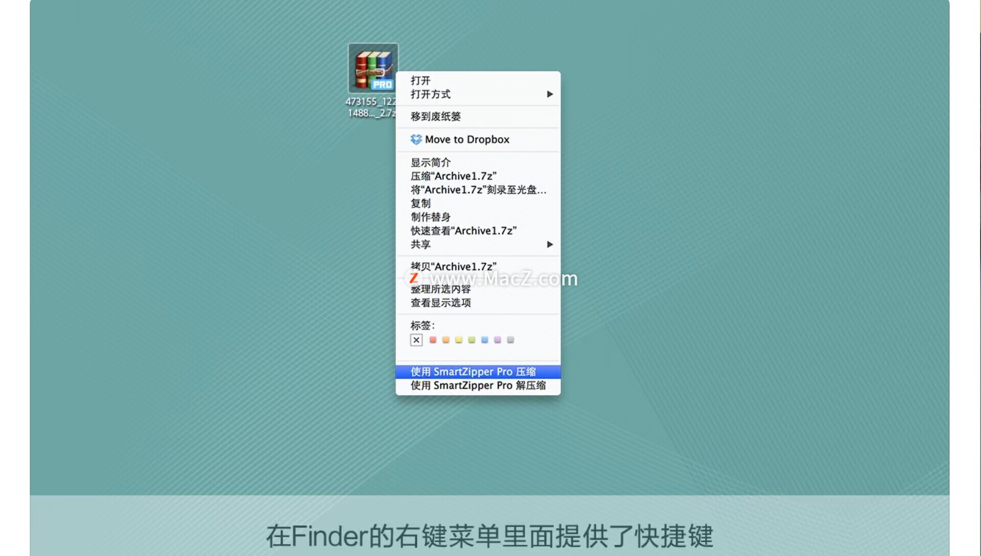 此外,SmartZipper for Mac还支持多种压缩等级,包括无压缩、最快压缩、快速压缩、正常压缩、最大压缩和极限压缩,用户可以根据需求选择合适的压缩等级。
