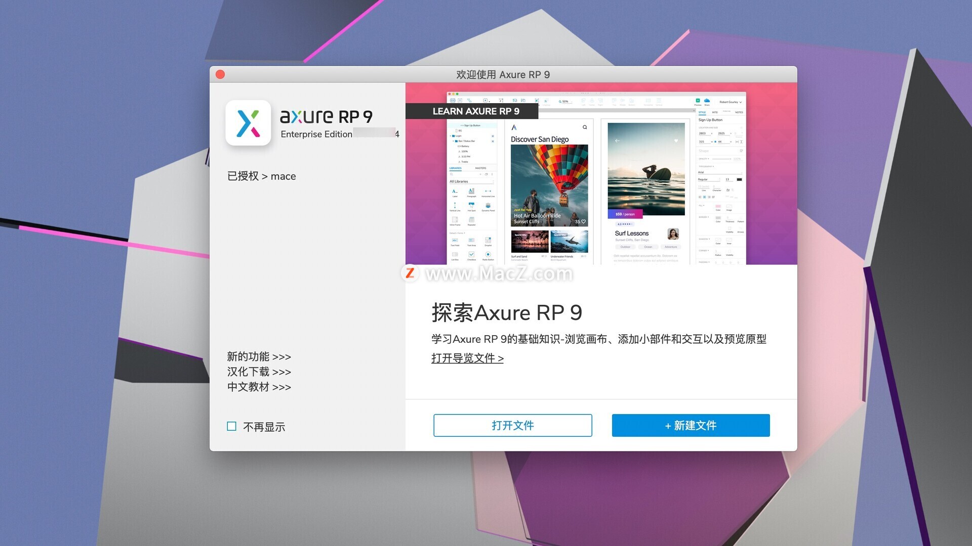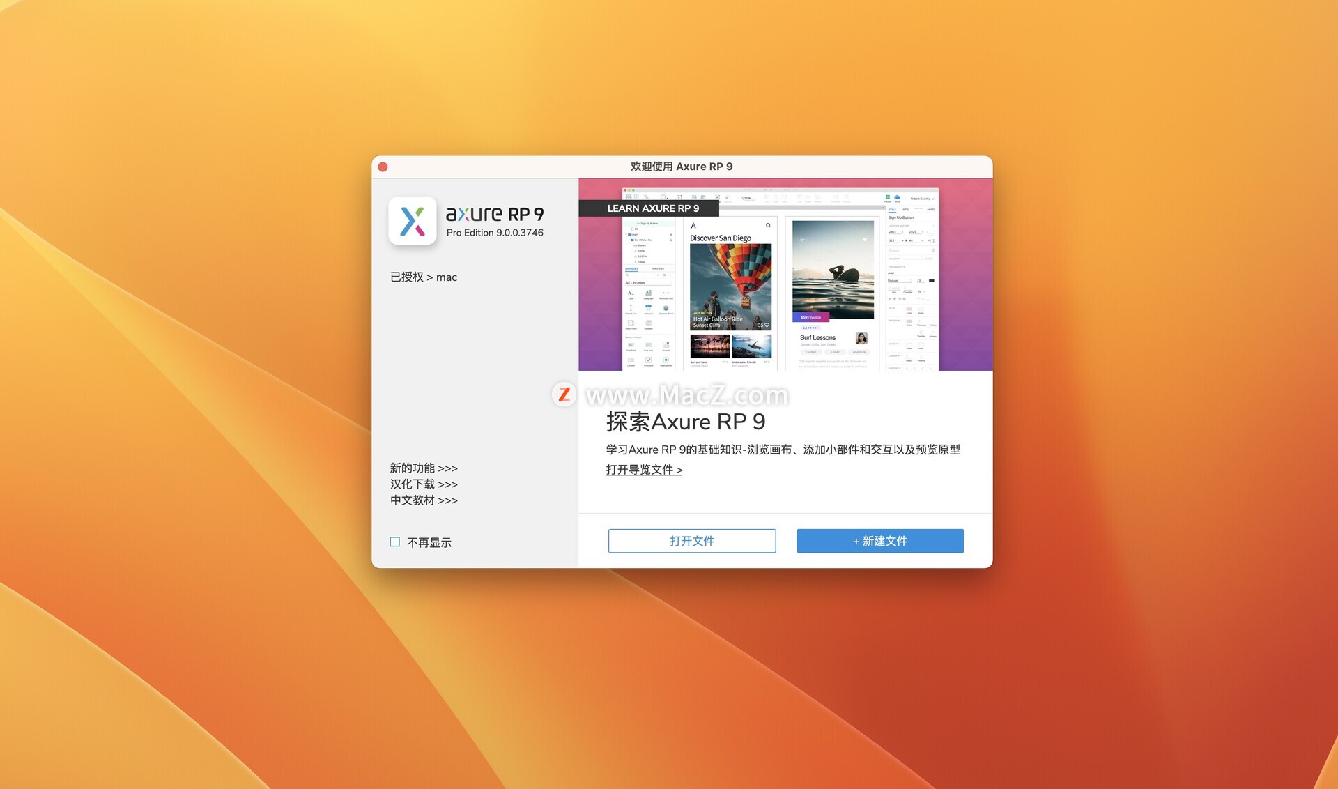 Axure RP 9 for Mac是一款非常专业的交互原型设计软件,它能让用户快速创建应用软件或Web网站的线框图、流程图、原型和规格说明文档。axure rp 9破解版作为专业的原型设计工具,它能快速、高效的创建原型,同时支持多人协作设计和版本控制管理。 测试系统: Monterey 14.1