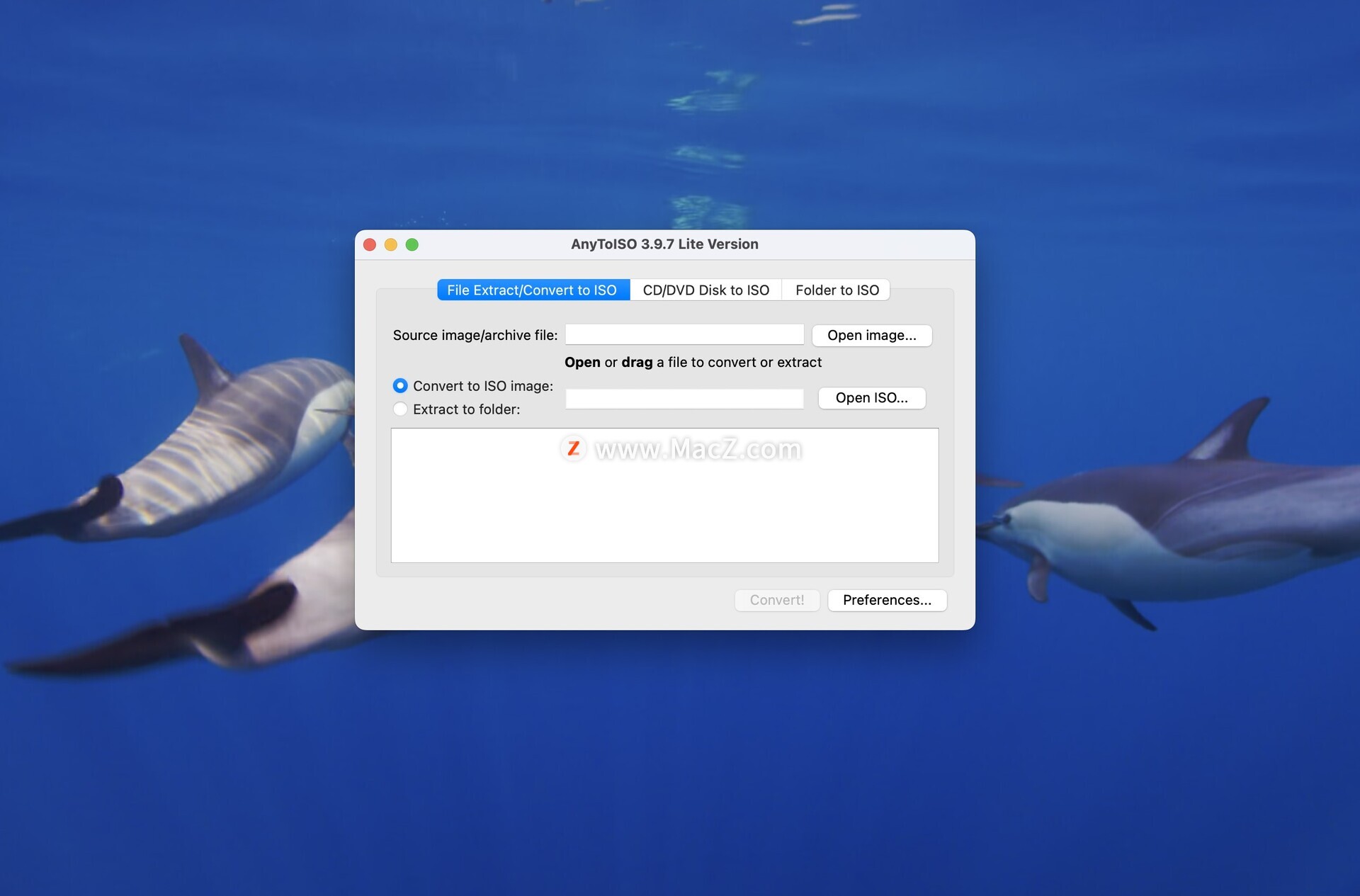 MacOS上的AnyToISO透明地与Apple Finder集成,将其自身添加到支持文件的 “打开方式”菜单中。用户可以选择是否转换或提取所需的文件。