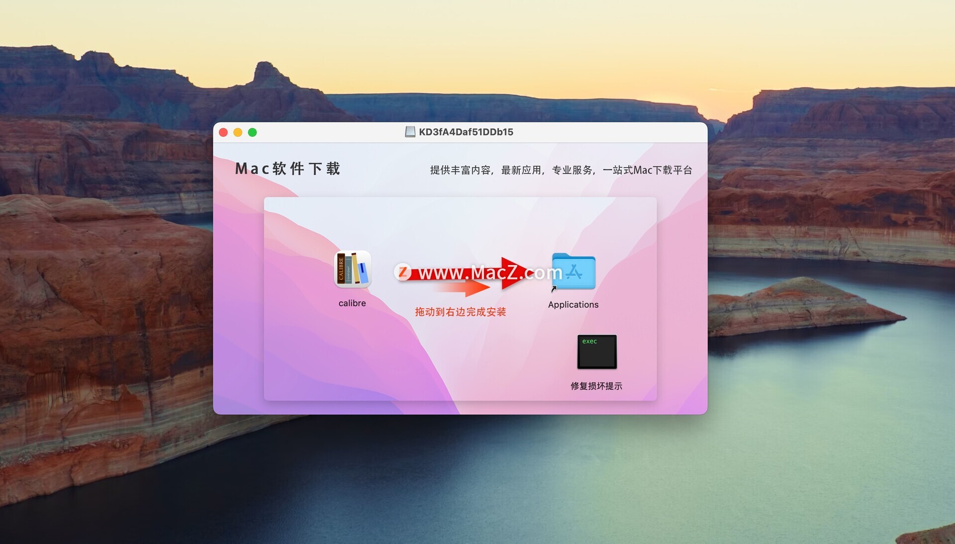 安装包下载完成后,拖动左侧的Calibre到右侧应用程序中即可