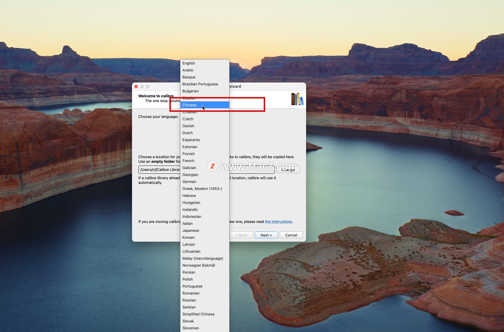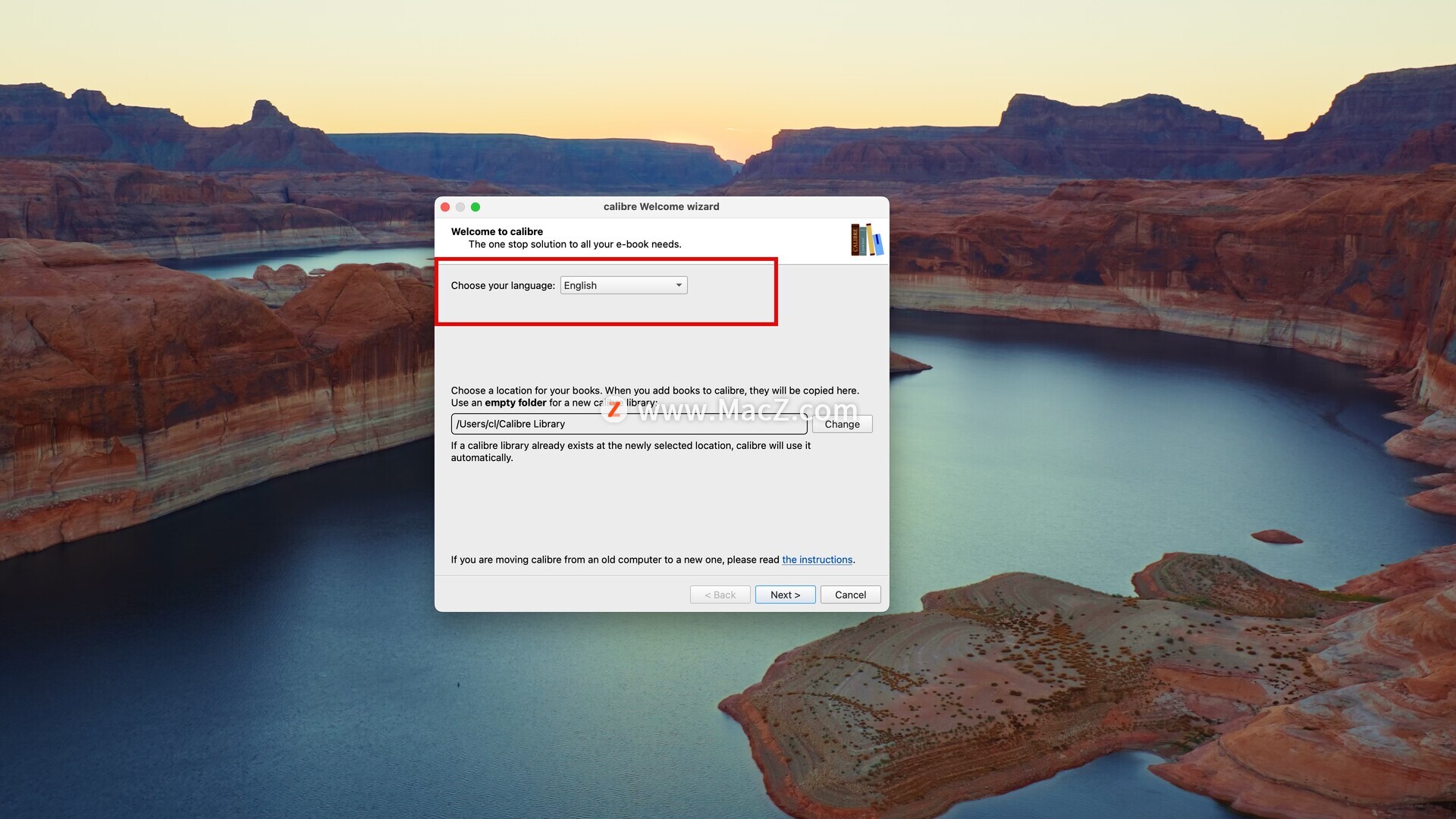 打开calibre mac 版后,点击Choose your language: