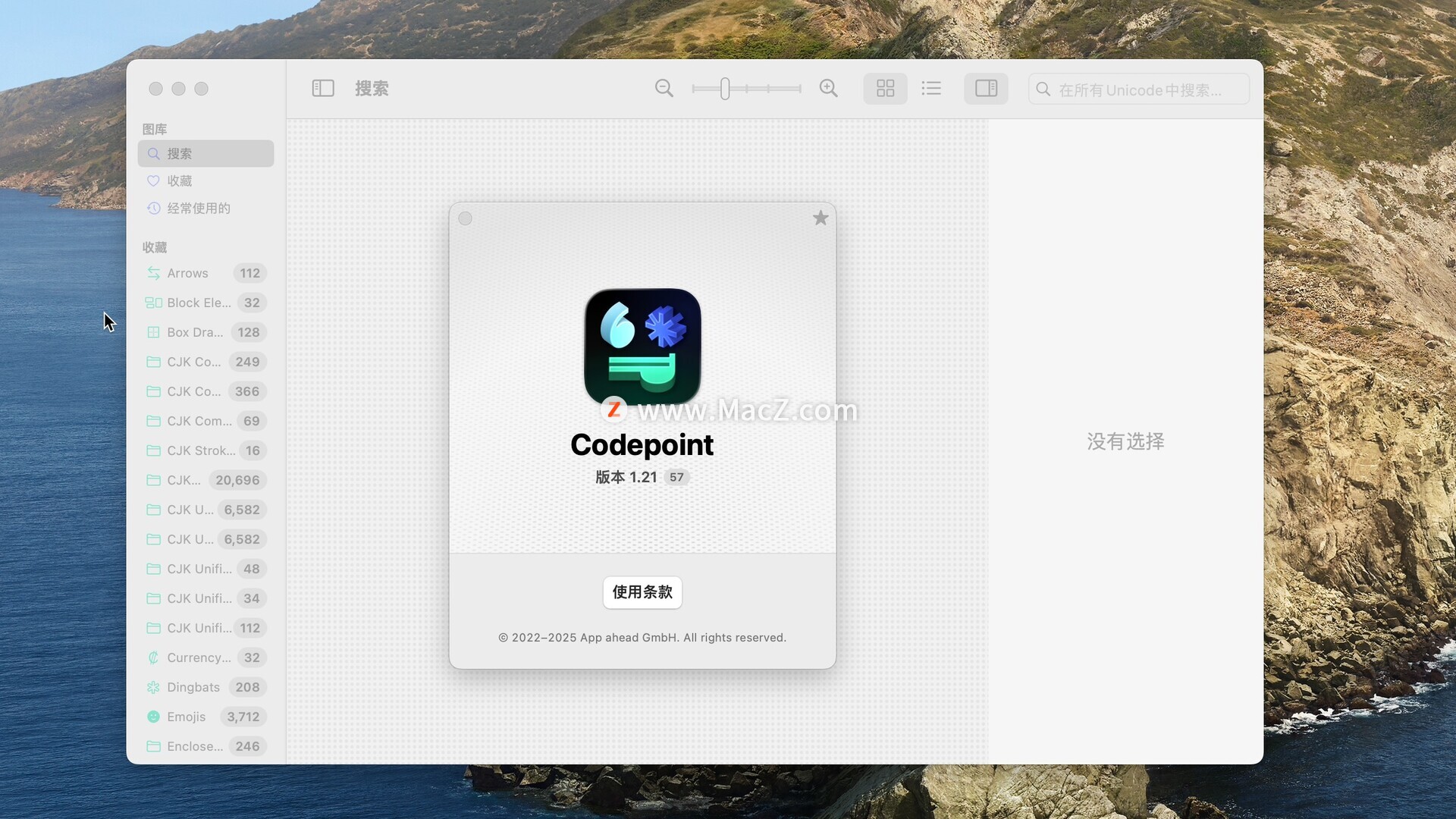Codepoint for mac一款图形字符开发工具,Codepoint破解版可帮助您找到所需的确切字符,并支持您发现新的字形。将它们导出为符号、字符串、十六进制、HTML 实体甚至 Swift 代码。将收藏夹储存在 iCloud 中。测试环境:MacOS 14.2