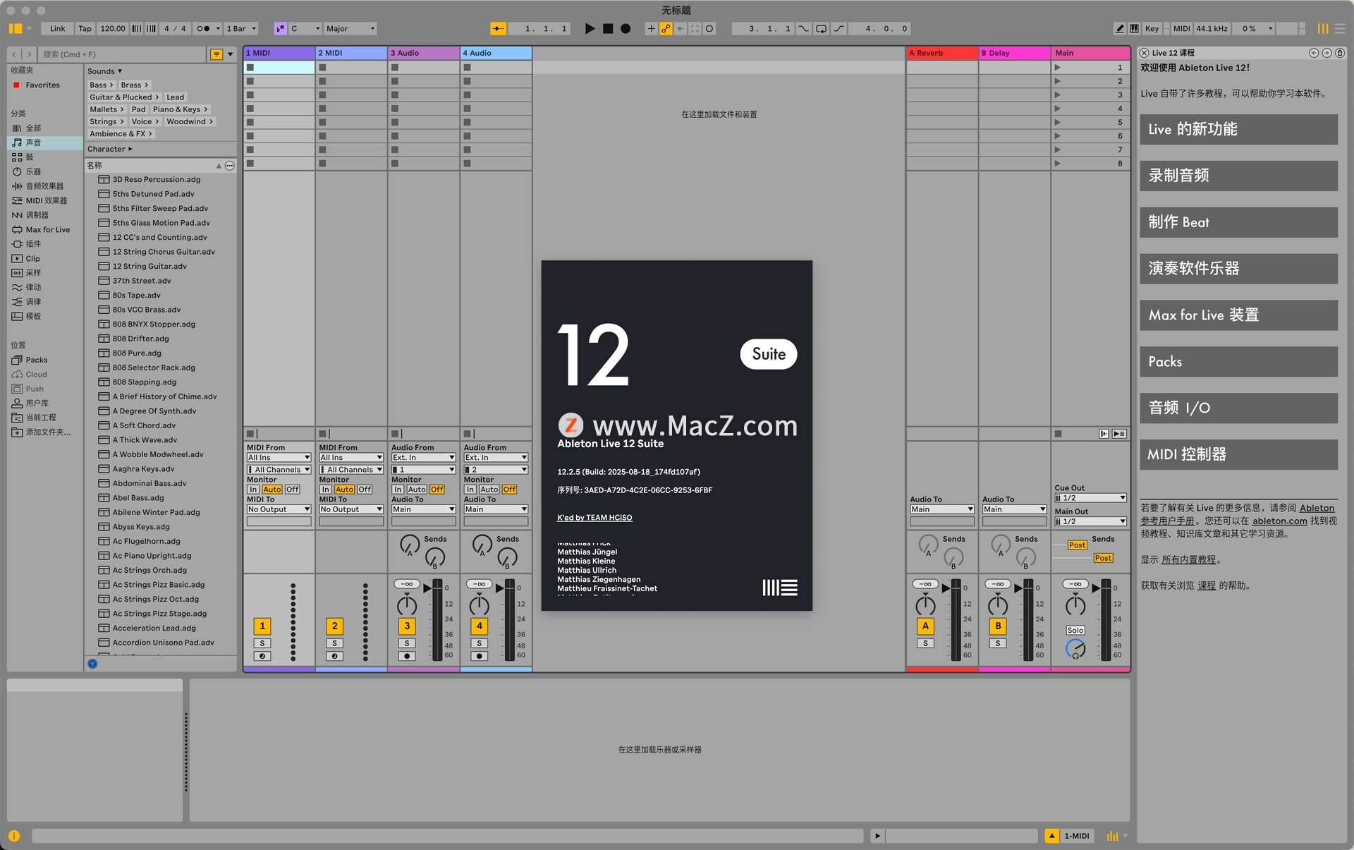 Ableton Live 12破解版下载完成后打开,将左侧Ableton Live 12 Suite