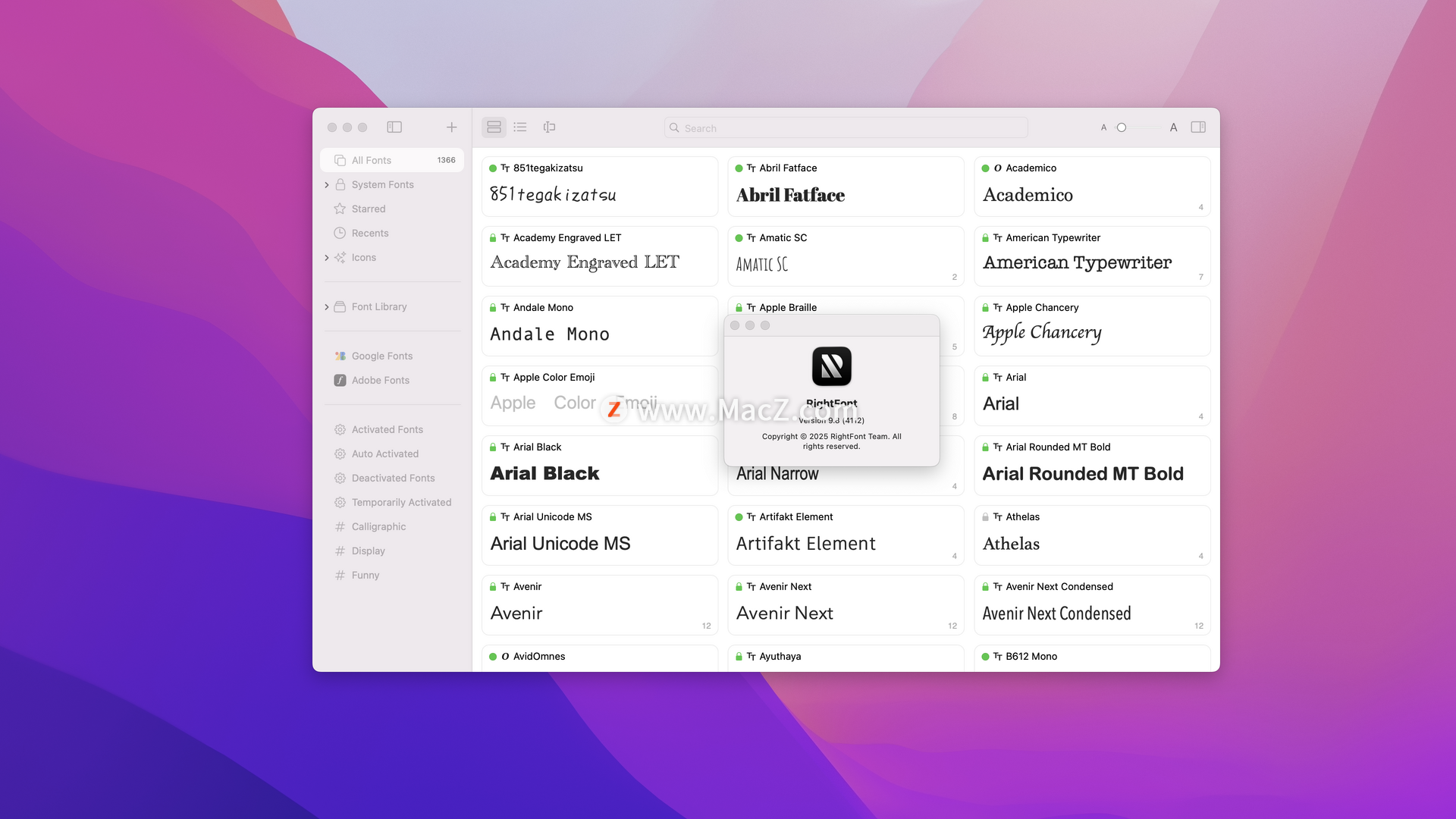RightFont 是一款适用于Mac的字体管理应用程序,允许用户在其计算机上安装、组织和管理字体。它支持各种字体文件格式,包括 TTF、OTF、TTC 和 Type1。