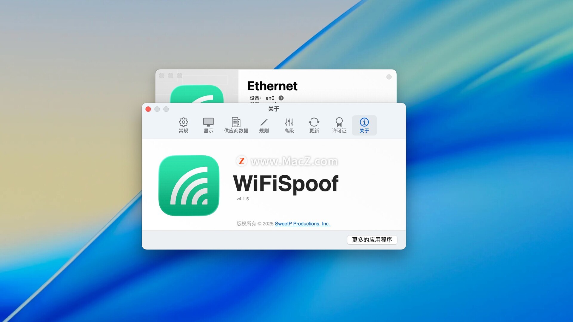 总之,WiFiSpoof for Mac是一款功能强大、操作简便的MAC地址修改工具,可以满足用户在保护隐私和网络安全方面的需求,提高网络使用体验和安全性。测试环境:MacOS 15.5