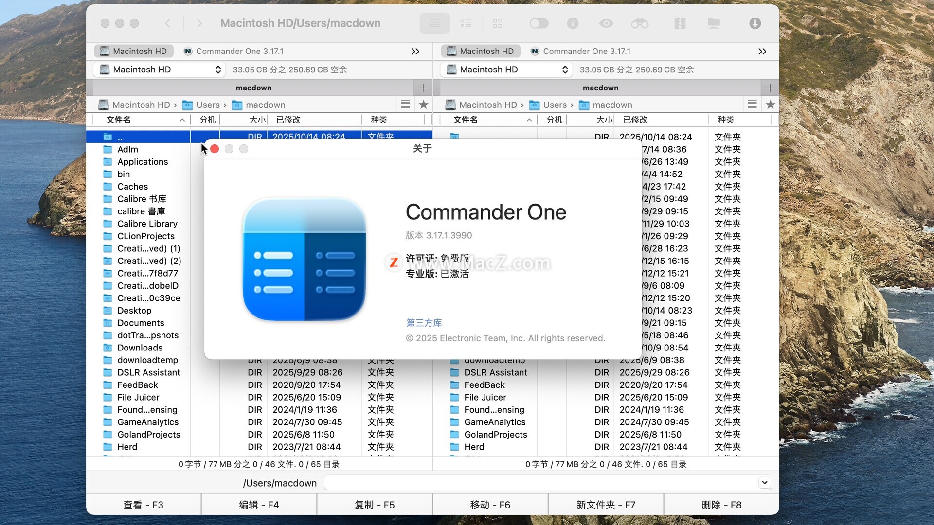 Commander One mac版是Macos上一款双窗口文件管理器,您可以在同一窗口中打开两个面板,每个面板支持多个选项卡,便于复制移动,软件具有搜素功能,Commander One下载可以帮助我们更加高效地进行文件或是文件夹的管理,更加有效的提高工作效率!测试环境:MacOS 15.0