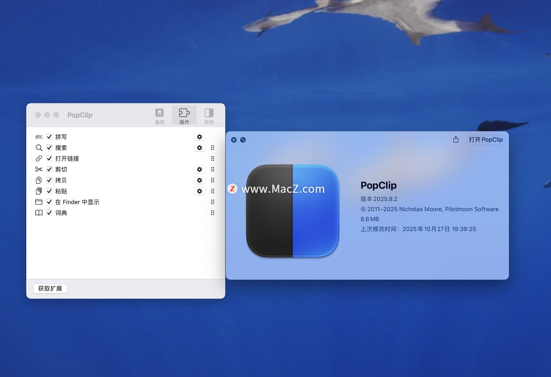 PopClip 是一款 Mac 平台上的实用工具,能够快速帮助用户进行剪贴板管理、文本处理等任务。在使用过程中,只需要用鼠标选中文本,就能够自动弹出一系列常用选项,如复制、粘贴、搜索、翻译、分享等。这些选项直接显示在选中文本的附近,可以直接进行操作,极大地提高了效率。而且,PopClip 还支持自定义插件,用户可以根据自己的需要添加一些实用的功能,如计算器、代码格式化等。总之,PopClip 是一款极为便捷的工具,不仅可用于日常办公生活,也适用于程序员等专业人士。
