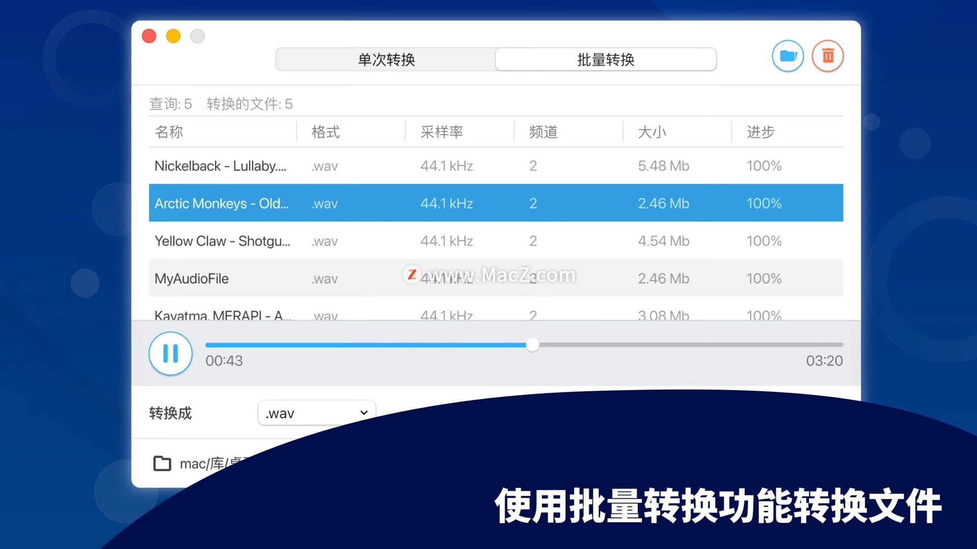 - 批量转换功能:该软件支持批量转换,允许用户一次性选择并转换多个音频文件,大大提高了转换效率,节省了用户的时间。